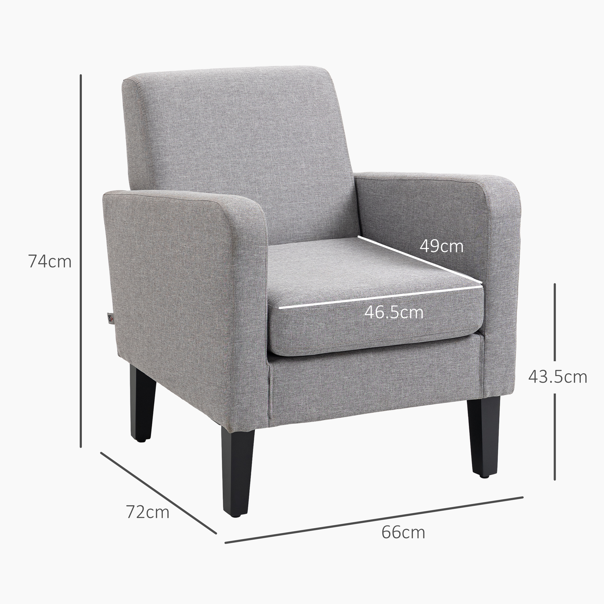 Sometimes, simple is great. This small armchair from HOMCOM doesn't come any much better than this. Taking a classic shape, it's updated with a modern twist, with the tilted backrest and sloped arms giving it some flair. The cushion features thick sponge will better contour and fit your body to provide a comfortable and relaxing sitting experience, whilst the solid wood structure provides support as you sit. The occasional chair is finished with wood legs for continual balance.