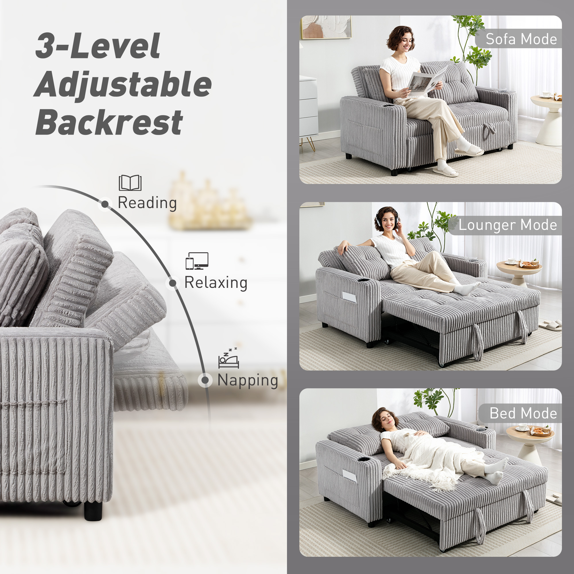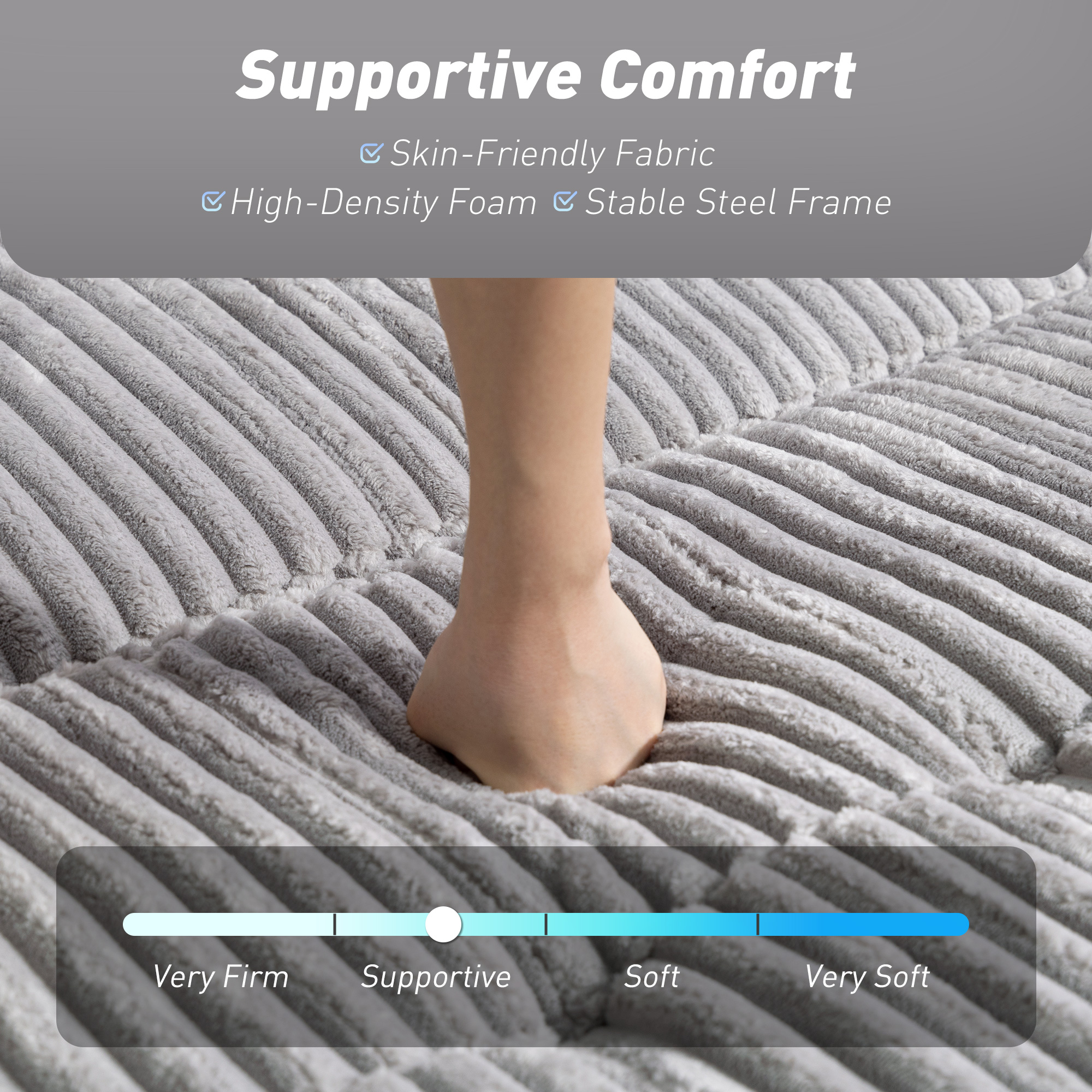 - Material: Corduroy (100% Polyester), Foam, Steel