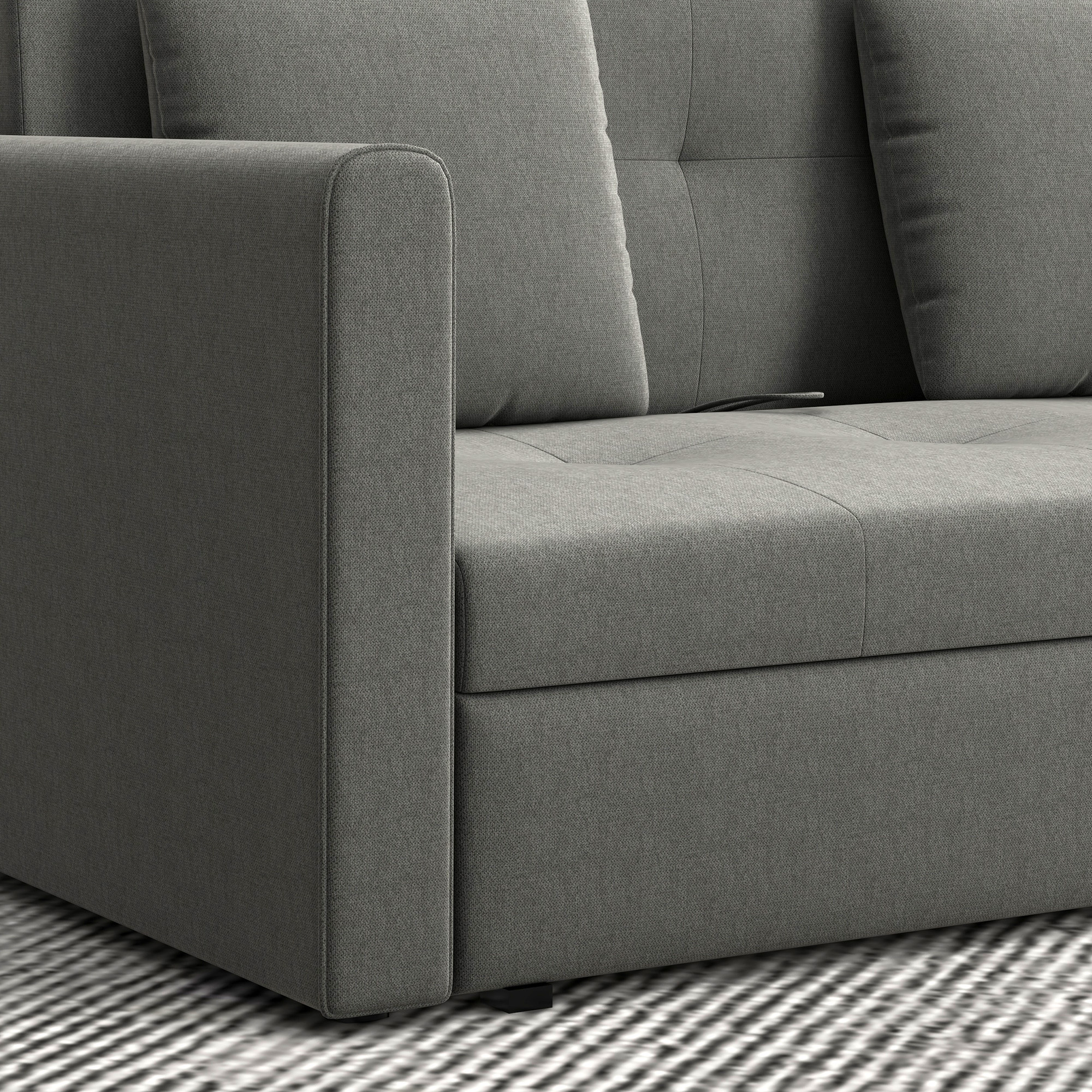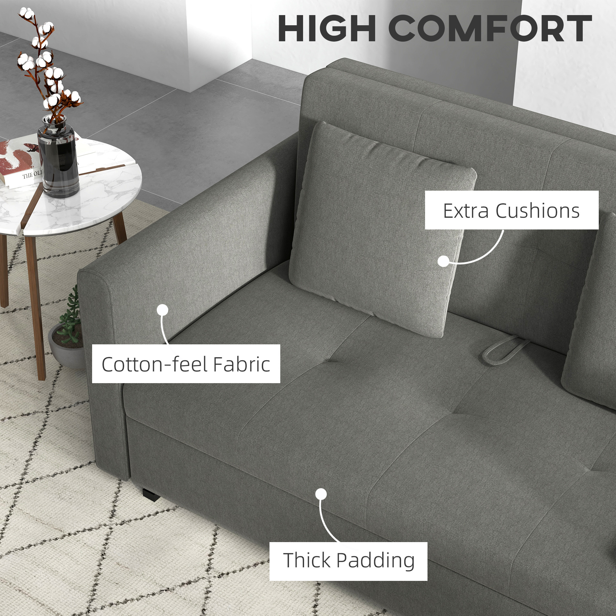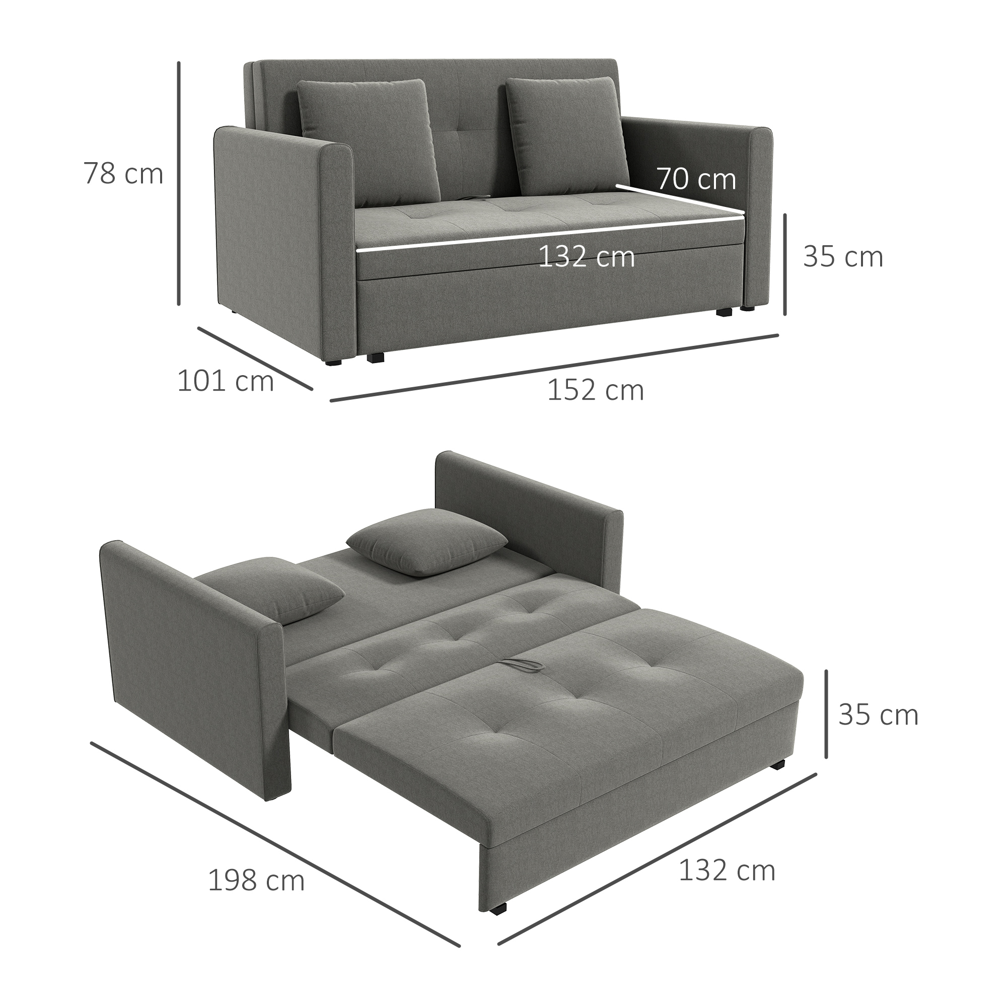 Switch from sitting to sleeping with ease, thanks to this HOMCOM sofa bed. The metal, wood and MDF frame means a tough core, supporting you whilst sitting and sleeping. It easily transforms from a two seater sofa into a bed - saves you time and stress. It comes with a 130 x 67.5cm storage compartment - room for keeping small pieces out of sight. Padded for comfort, this sofa bed comes complete with two small pillows.