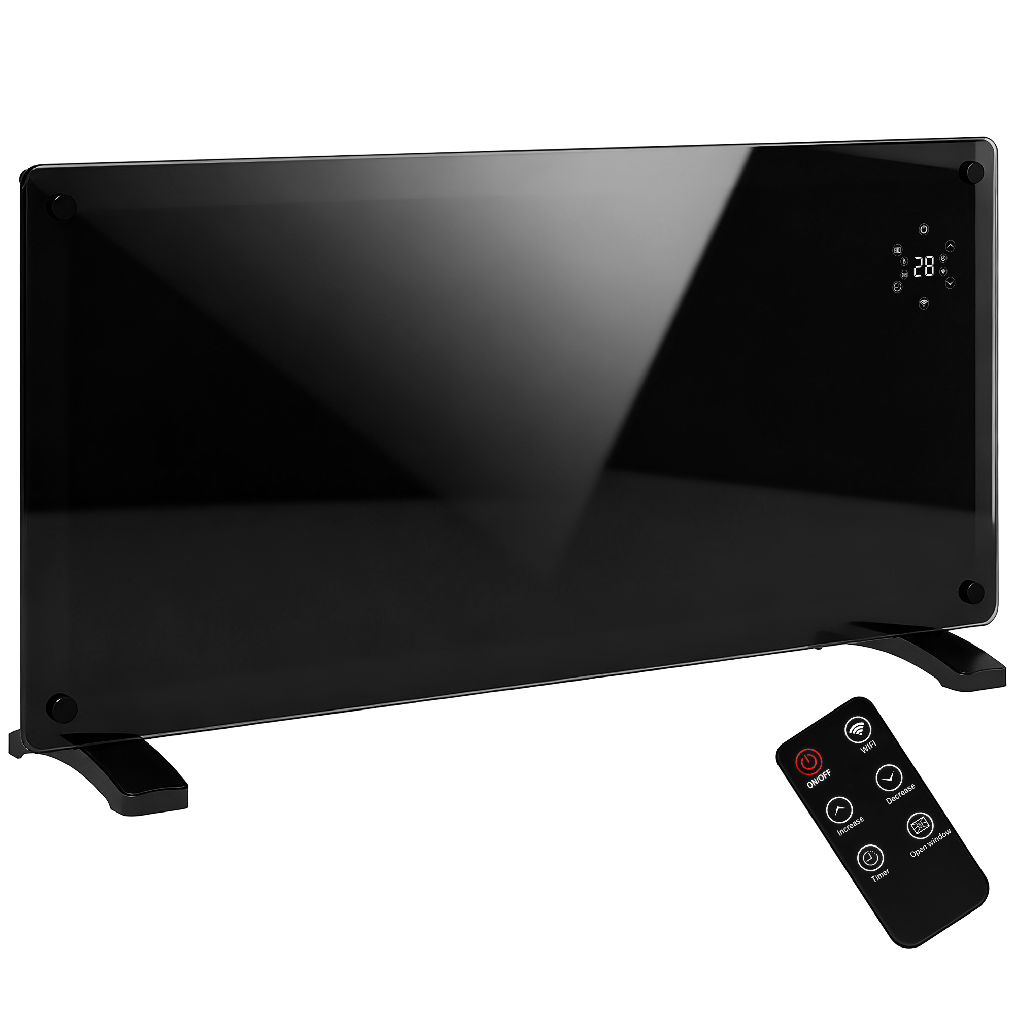 - 24-hour and weekly timer: schedule when heater turns on and off