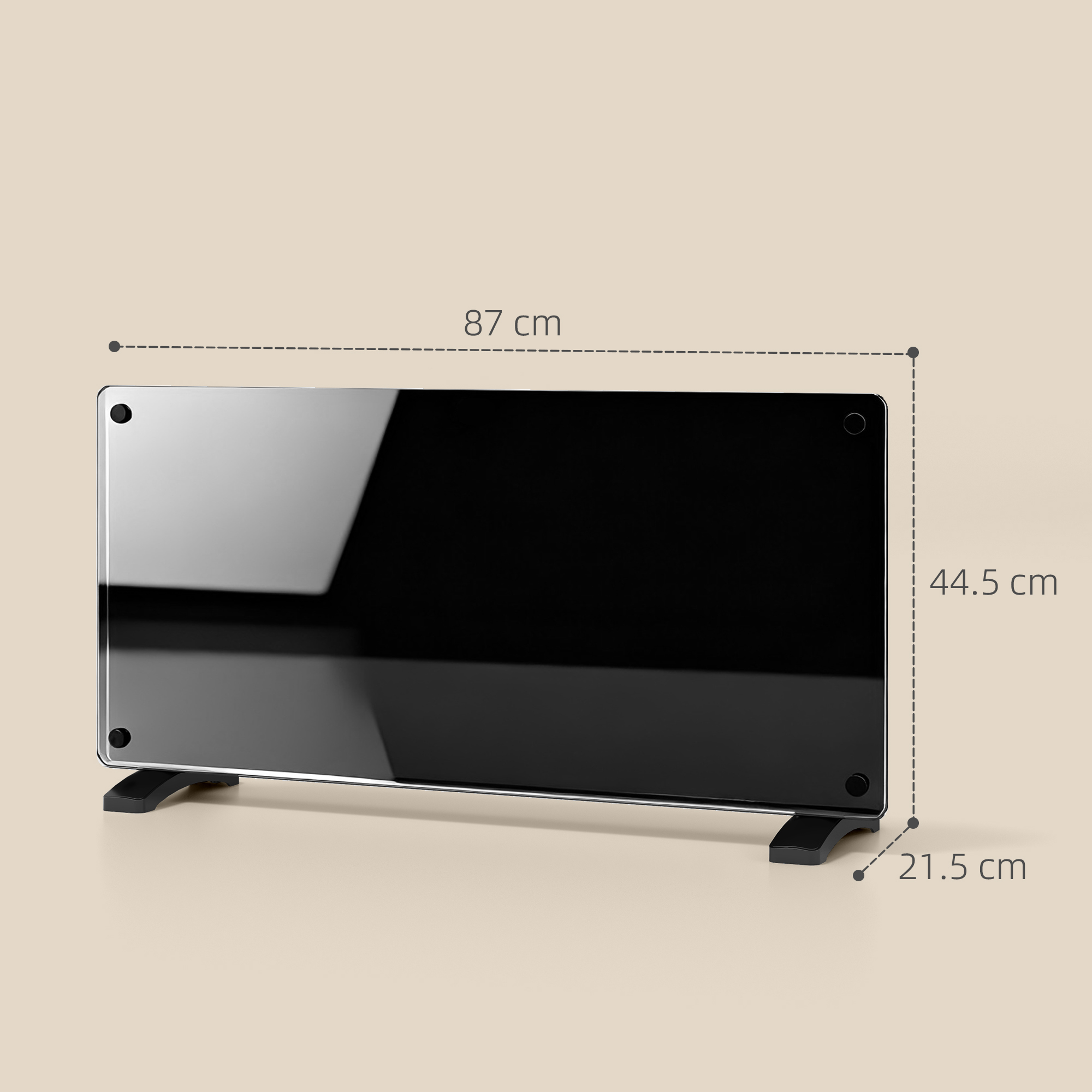- Overall Dimensions: 87W x 21.5D x 44.5H cm (with feet). 87W x 9.5D x 41H cm (without feet)