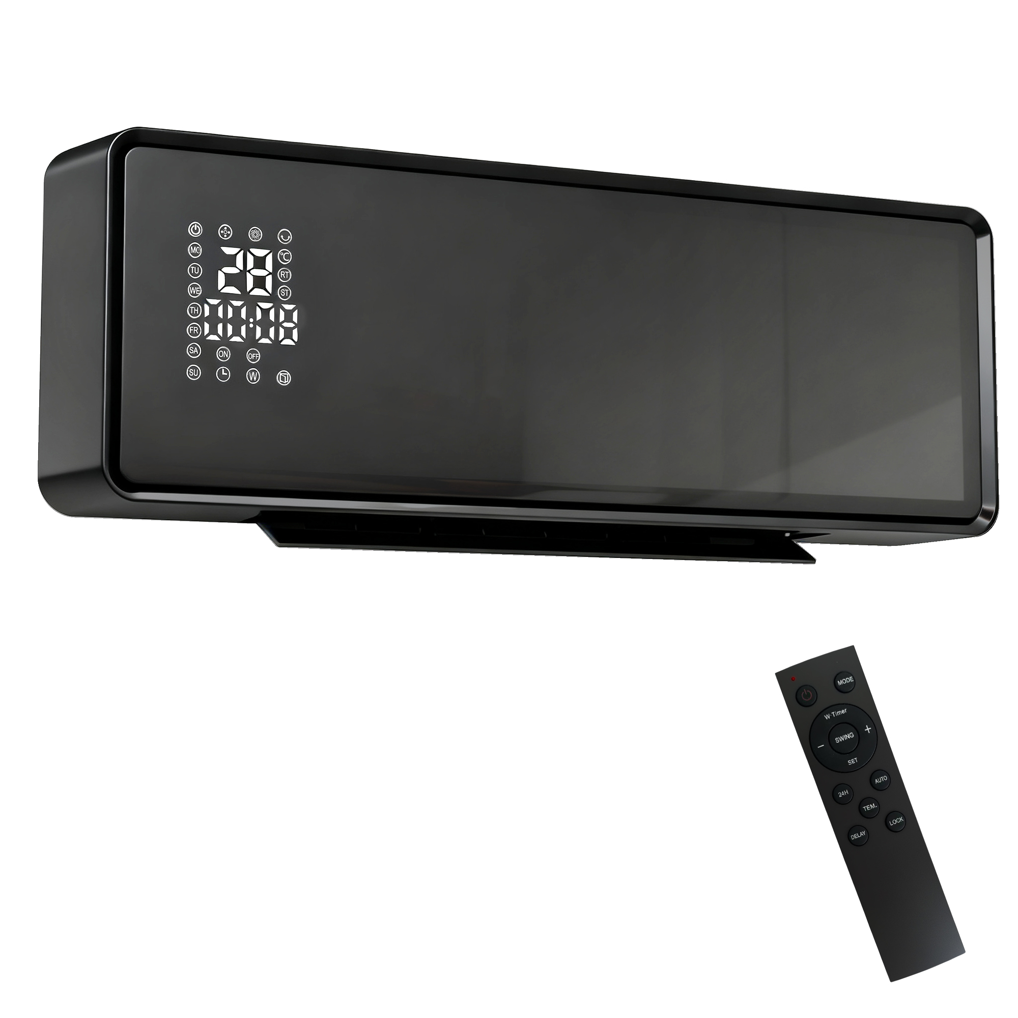 - Three modes (high heat/low heat/fan) and a thermostat (10-49°C) for precise temperature