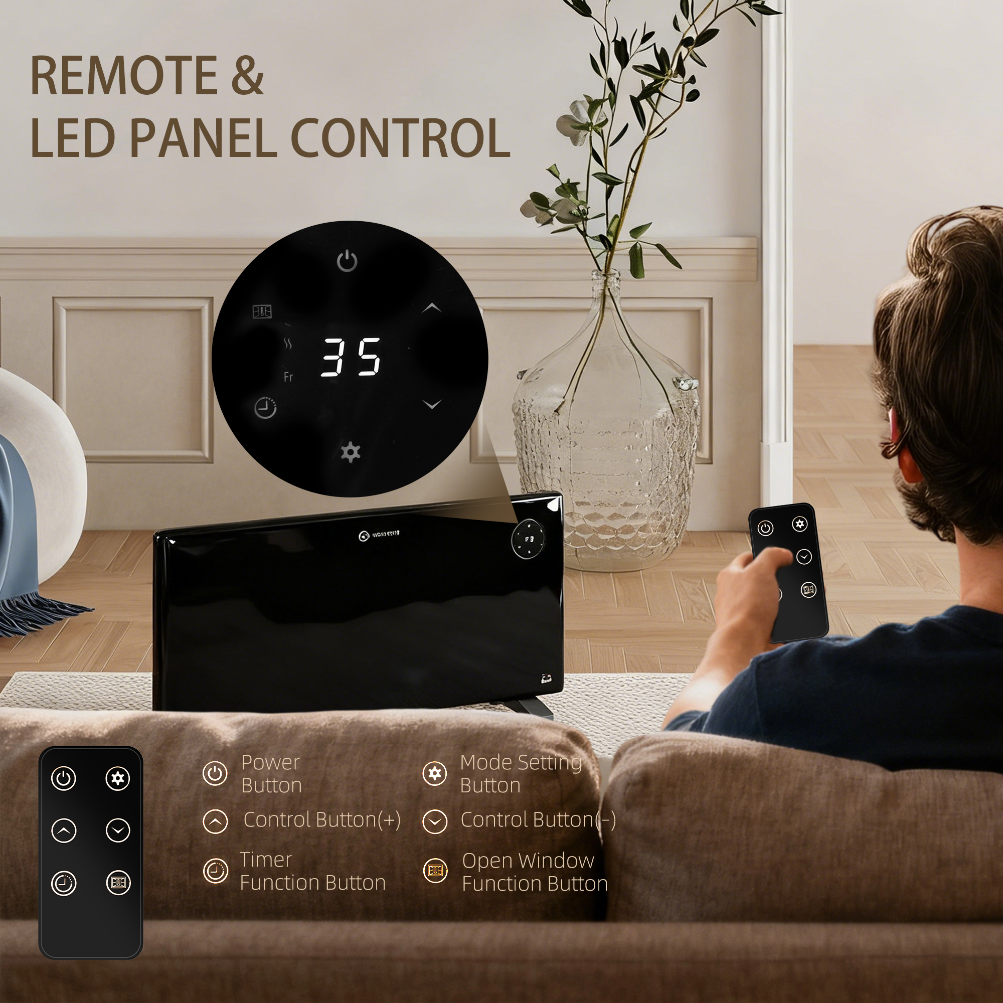 - LED control panel, remote included too