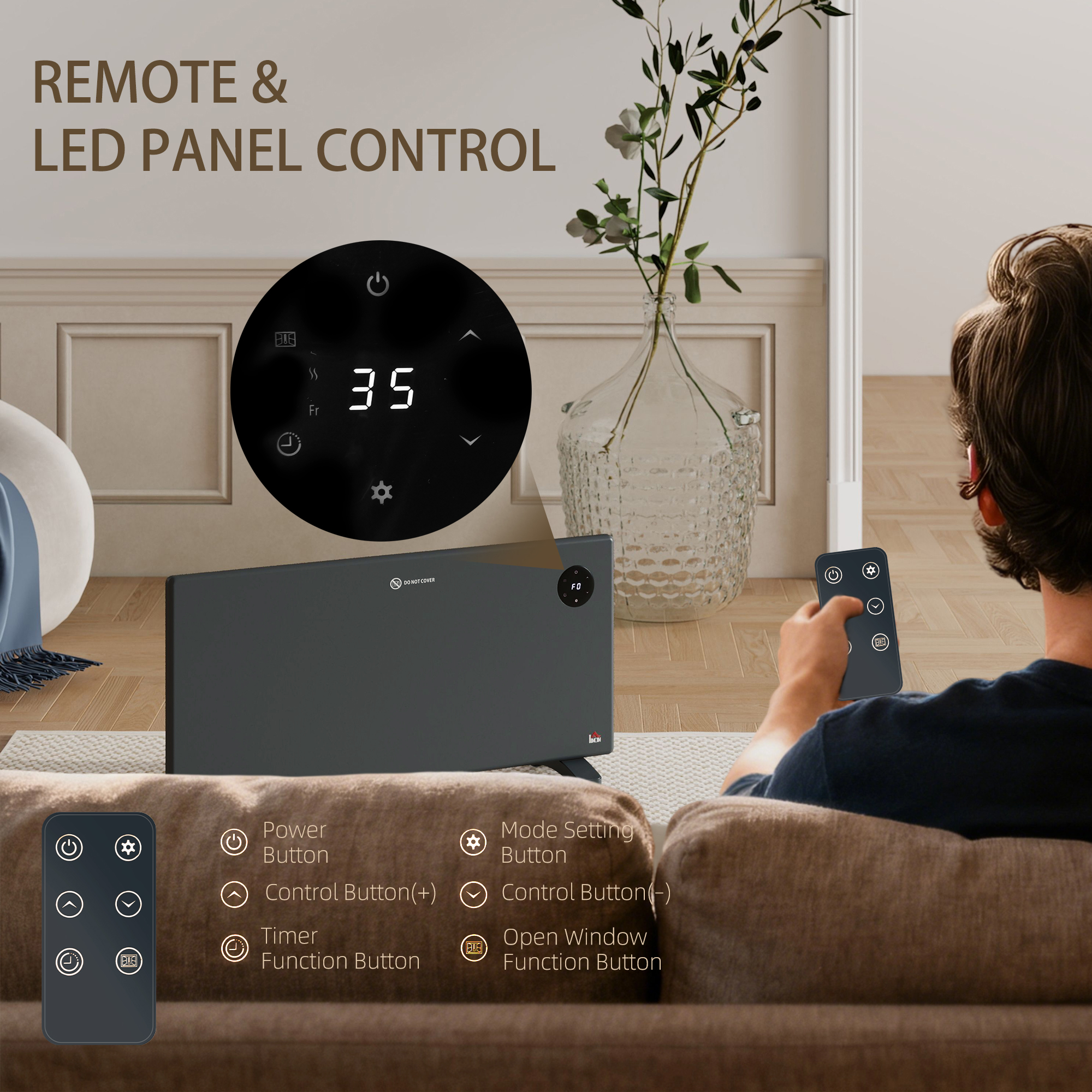 Experience style and warmth with the HOMCOM small heater, designed for families seeking comfort and efficiency. Its sleek, modern design seamlessly fits any decor, free-standing or wall-mounted. Effortlessly warm your space to a snug 5-35℃, ensuring comfort on chilly nights. Quick aluminum heating meets your warmth needs swiftly, enhanced by the ease of an LED display and remote. Prioritizing safety, it features overheat protection, making it an ideal choice for a warm, energy-conscious home.