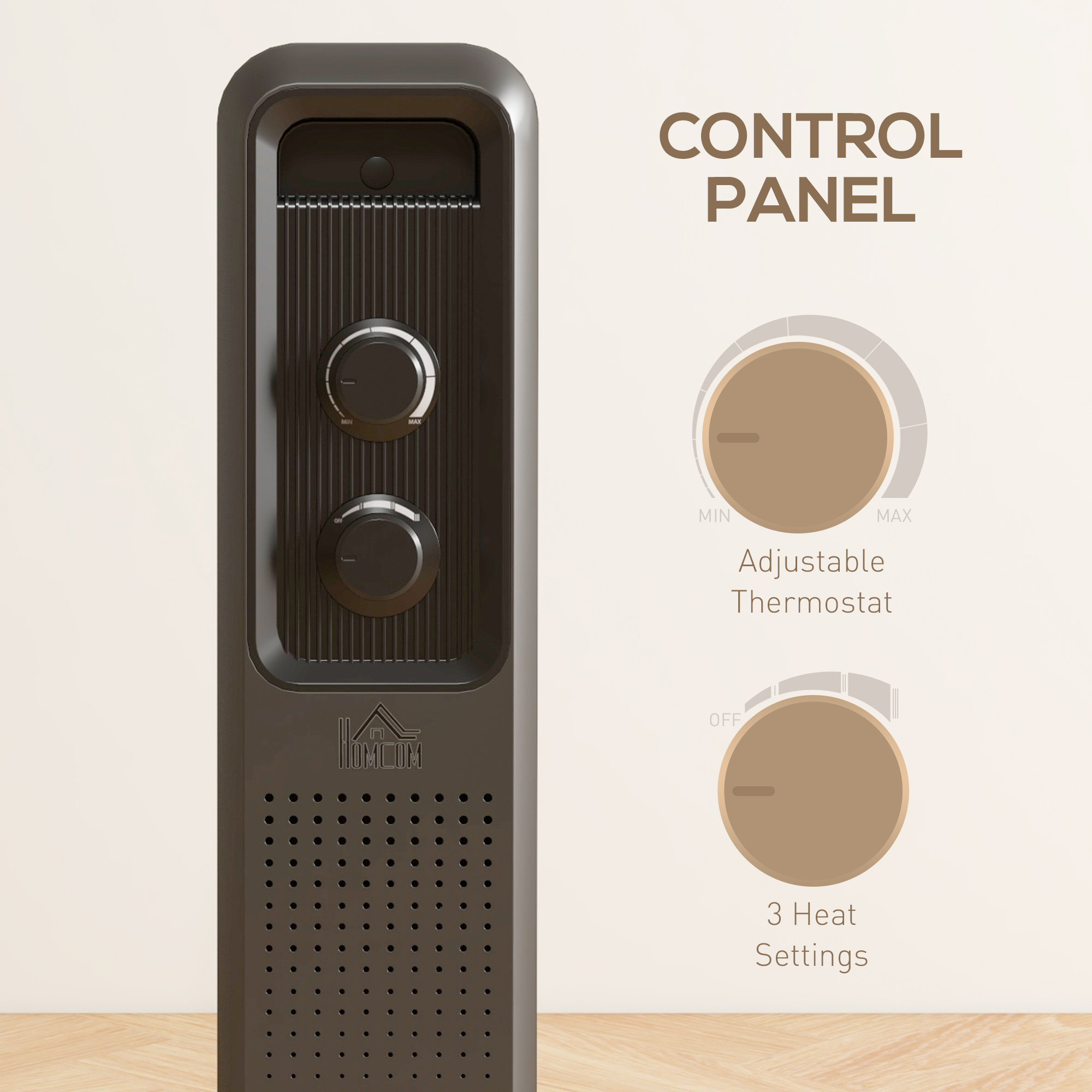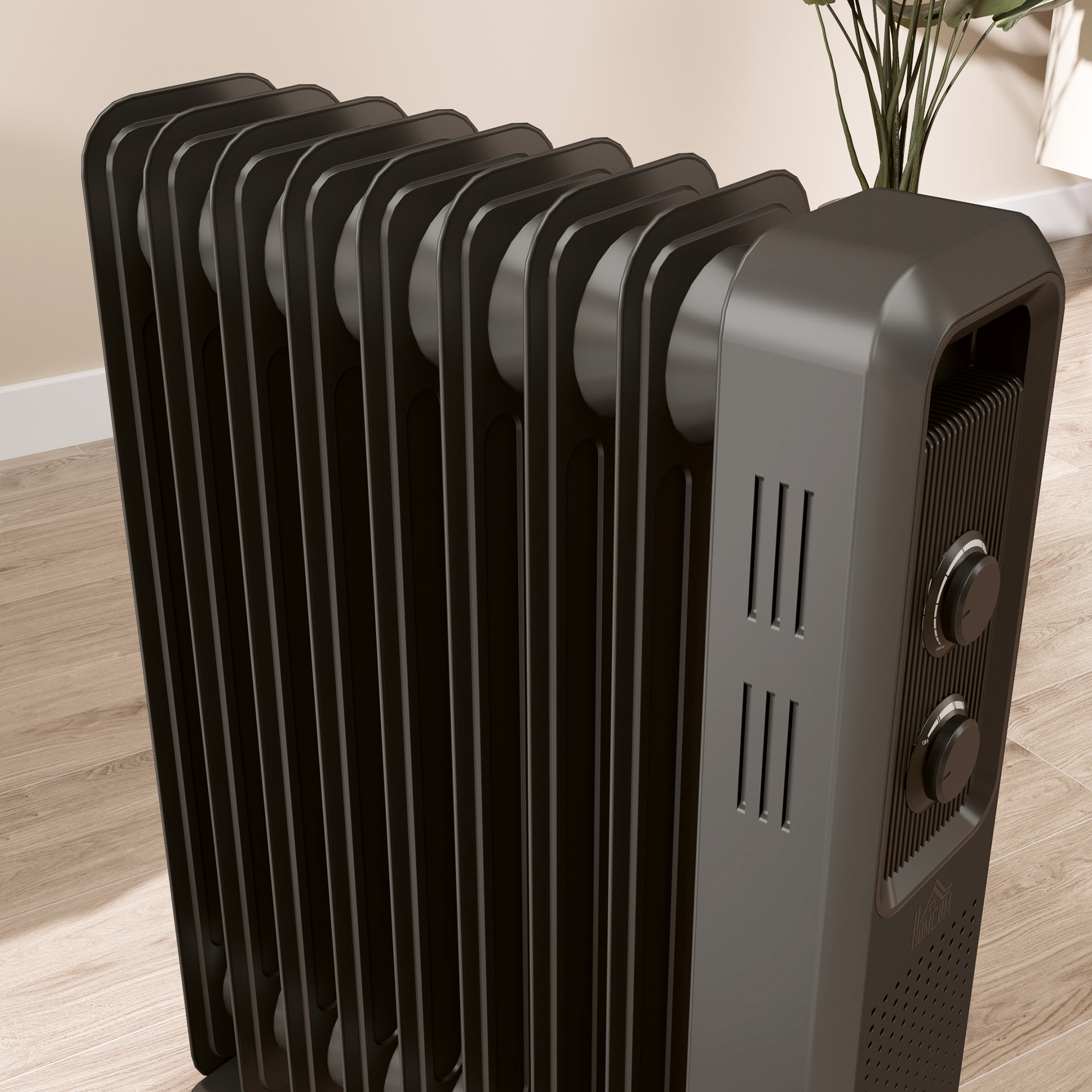Keep warm with this oil filled radiator from HOMCOM. With an adjustable temperature of 7-35℃ and three heating modes, you're in control of the heat you want. The overheating and tip-over function will turn it off safely, so you can enjoy this portable radiator with peace of mind. Move with minimum fuss using the wheels and handle, making sure no room goes cold. It's complete with a cable organizer for tidiness. Get a cosy winter by HOMCOM electric radiator.