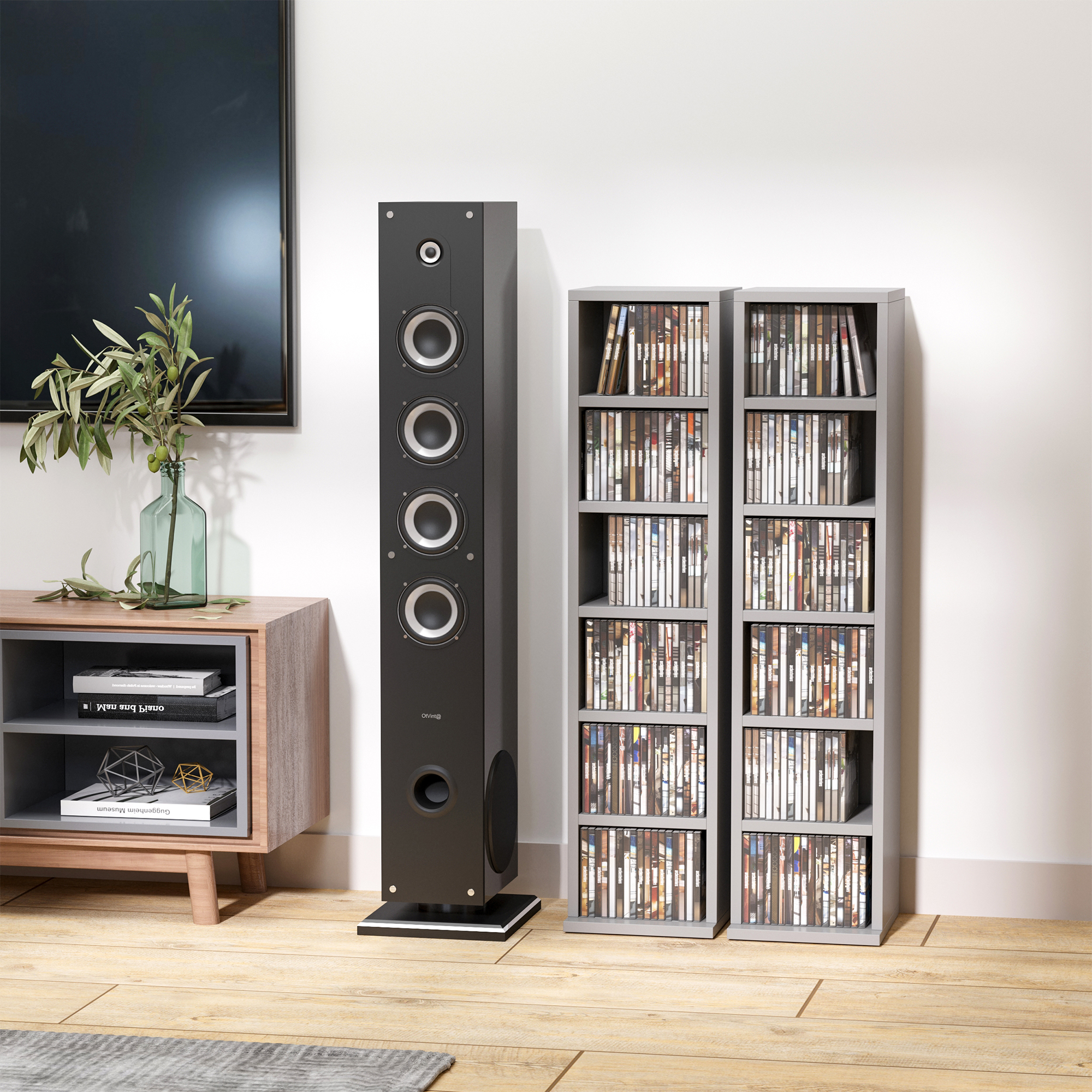 - Each unit features six compartments, each holding up to 102 CDs