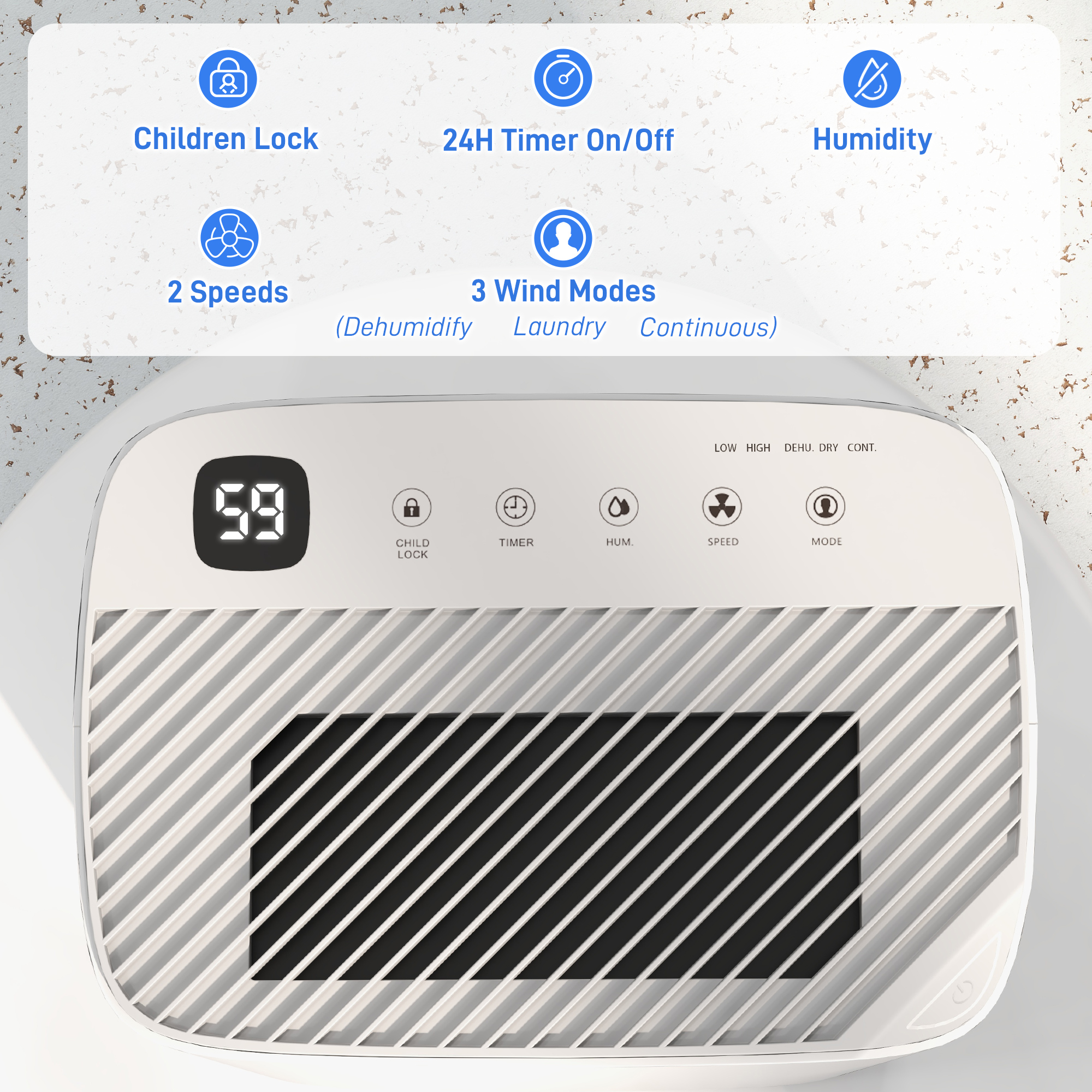 - Easy touch control with child lock and LED humidity display