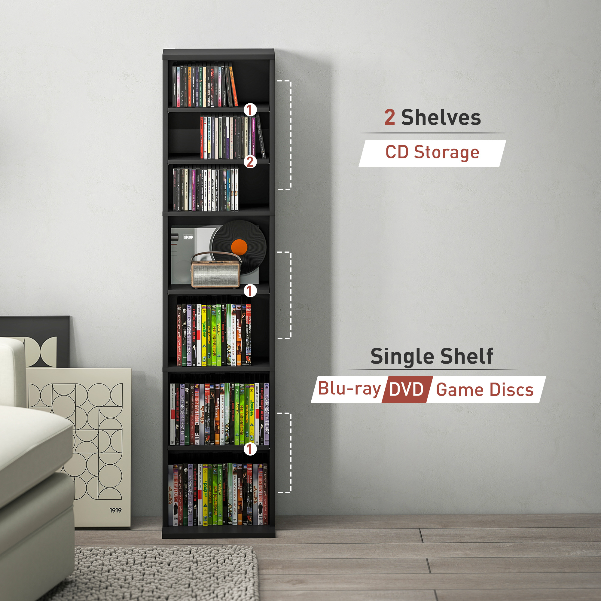 An easy and simple solution for keeping media stored, in the home and beyond - this HOMCOM storage unit. It holds up to 260 CDs, or 120 DVDs, with six adjustable shelves for customisable storage. The CD shelf is made from tough particle board with a smooth melamine coating, complete with anti-tipping straps included to secure to a wall.