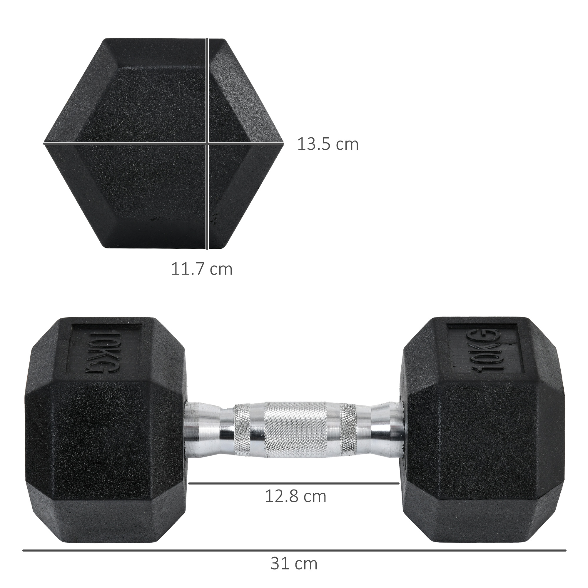 Elevate your fitness journey with this pair of hexagon rubber dumbbells, designed for enthusiasts dedicated to maintaining health and strength. Perfect for home, gym, or office workouts, these dumbbells are crafted from durable metal and rubber, ensuring longevity and floor protection. The knurled grip offers safety and confidence during exercises like alternating curls and triceps kickbacks. Ideal for integrating into strength training plans.