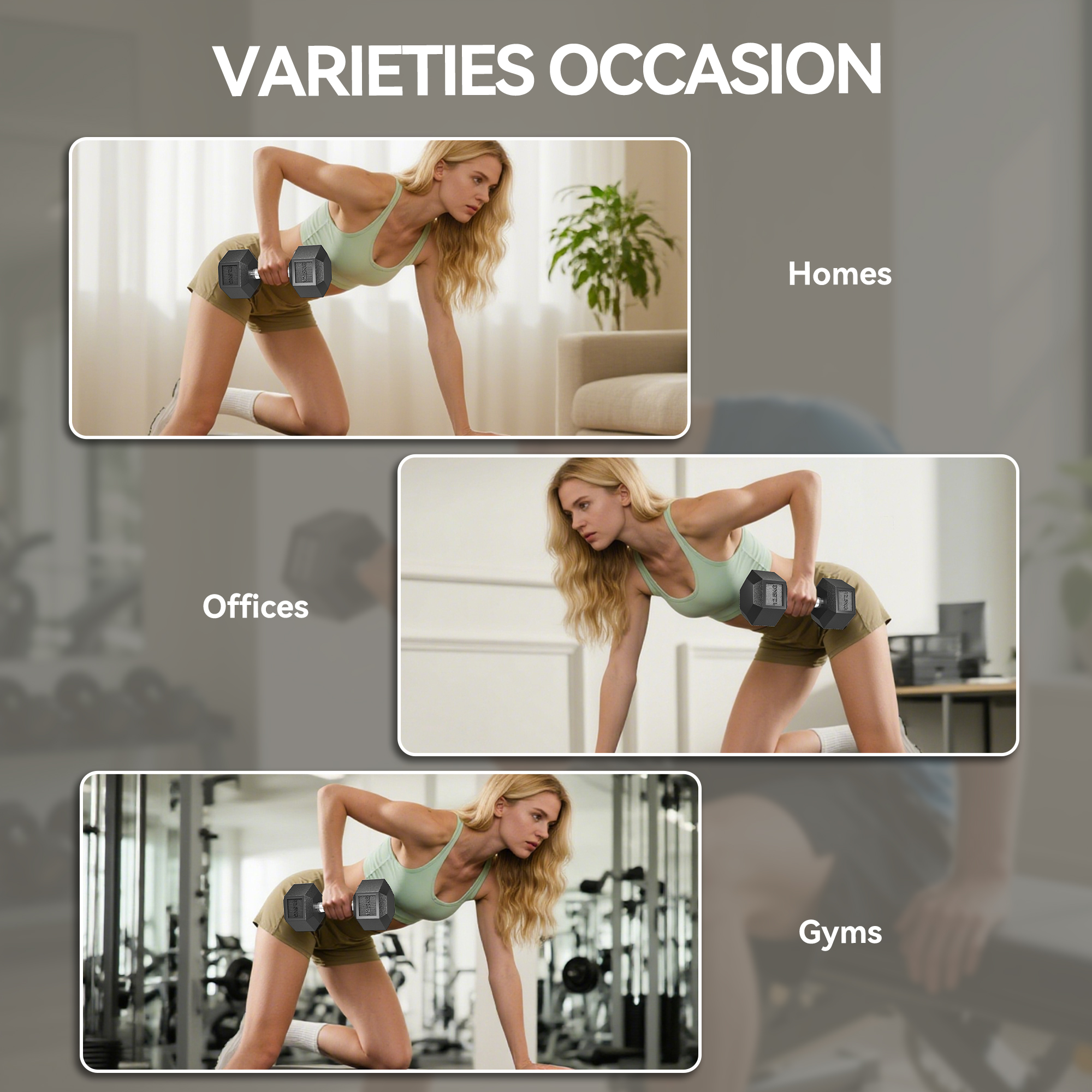- Rubber covered ends for safety when dropped, hexagon shape stops weight rolling