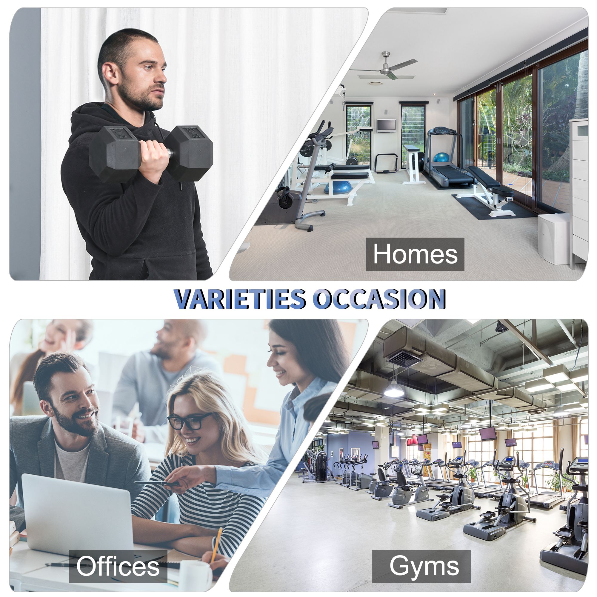 - Rubber covered ends for safety when dropped, hexagon shape stops weight rolling