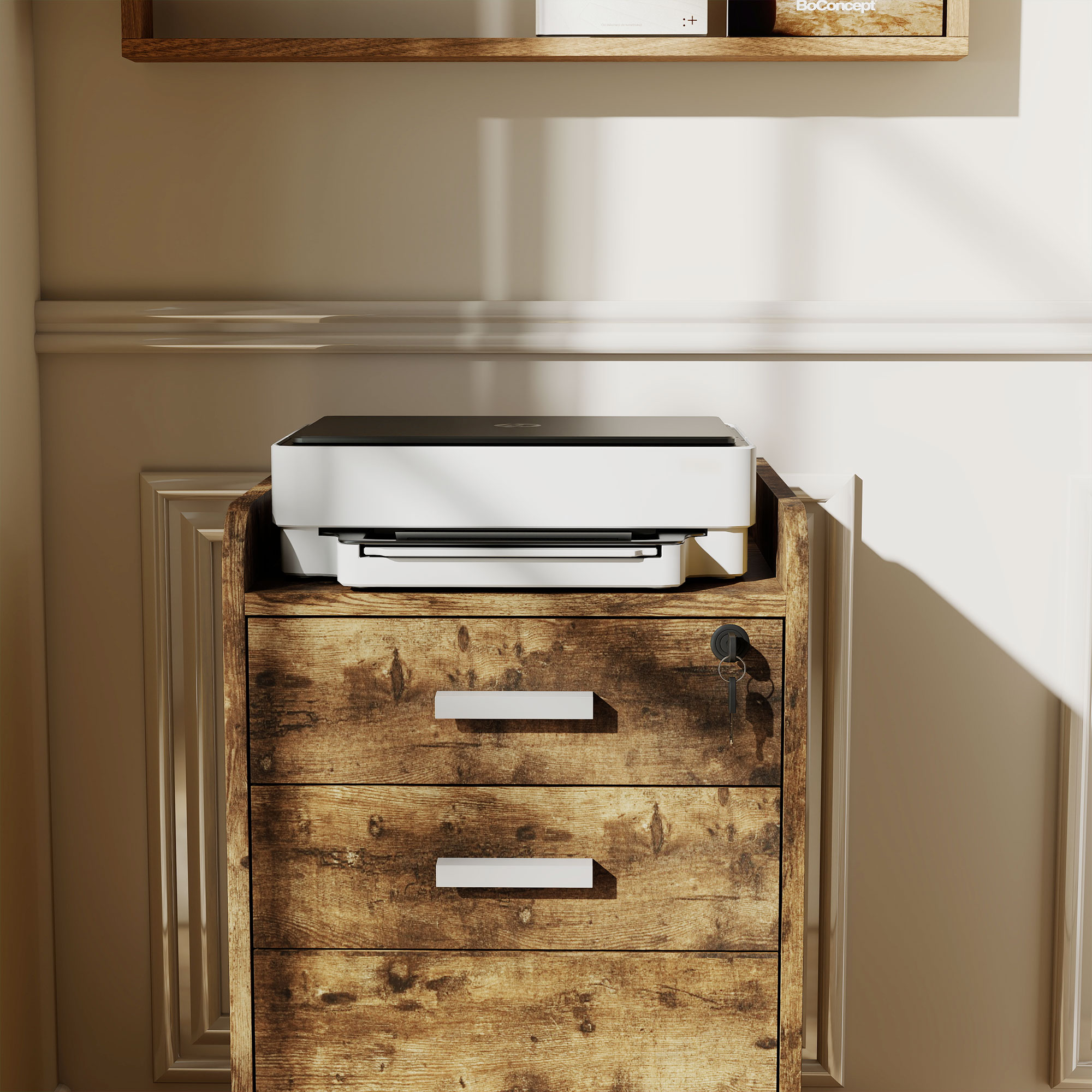 - Three drawers for files, papers and more