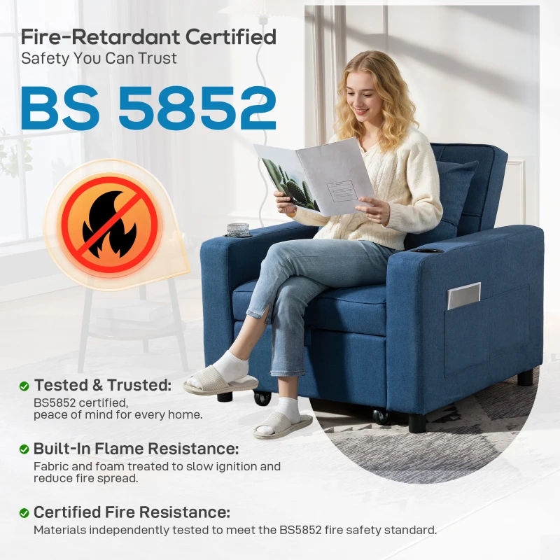 - Three-way design: Armchair, to recliner, to single bed. Use it how you want