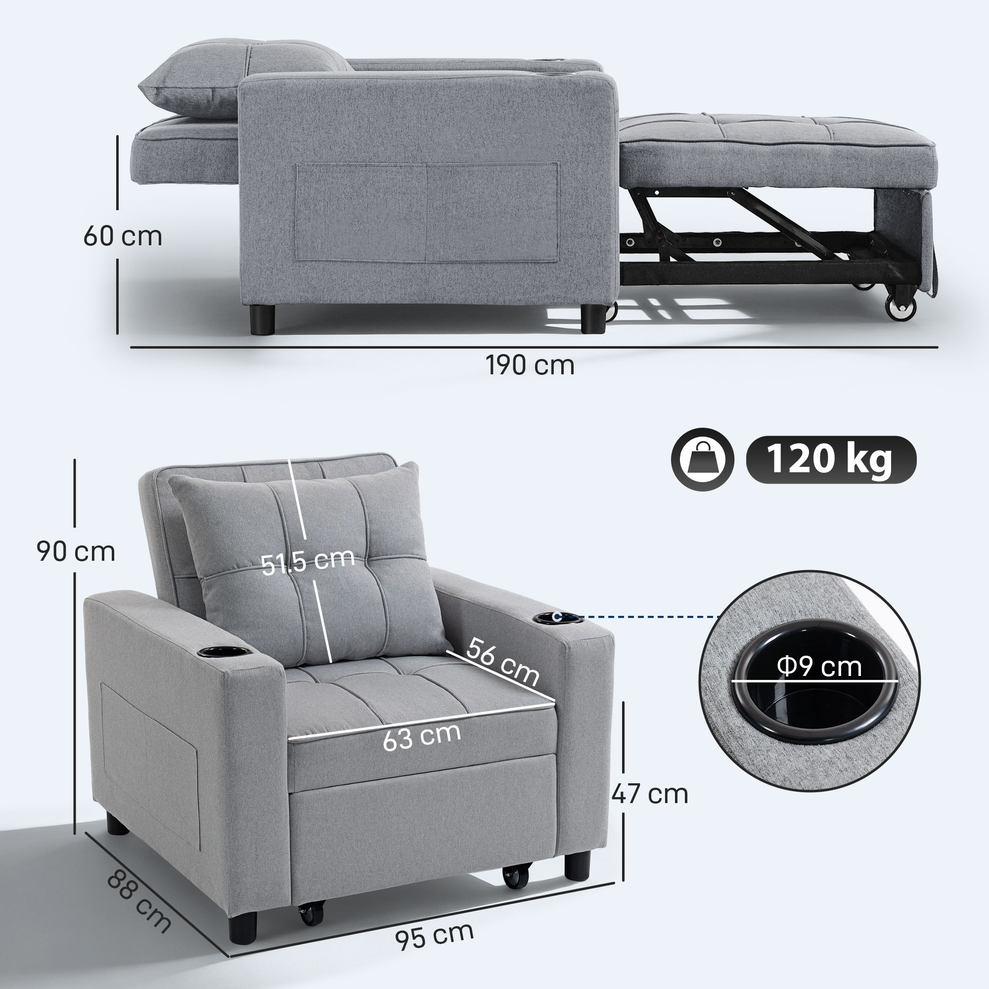 From day to night with this HOMCOM single sofa bed. Switch effortlessly between the armchair, reclining lounger and single bed: use this piece how you want. The 95 x 190 cm bed size provides plenty of sleeping room, even for taller users. It's filled with high-density foam, making this a comfortable piece to use how you want, whilst retaining the shape. Plus, adjust the backrest to your liking and enjoy added comfort with the included pillow.