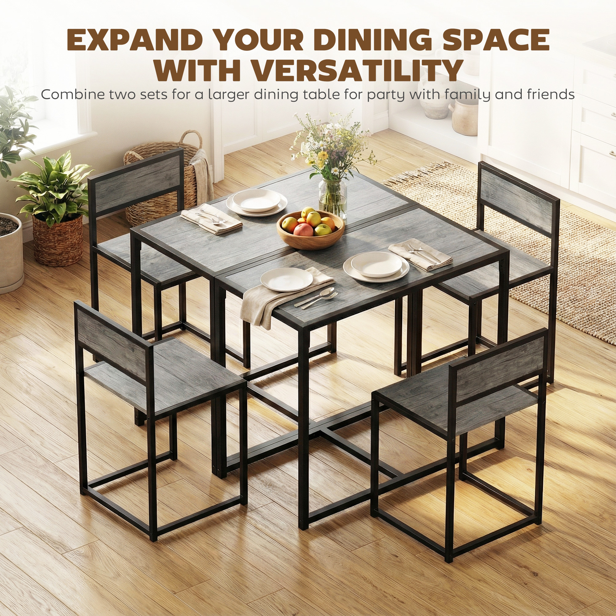 - Compact design, with the chairs tucking neatly under the table, helps save space