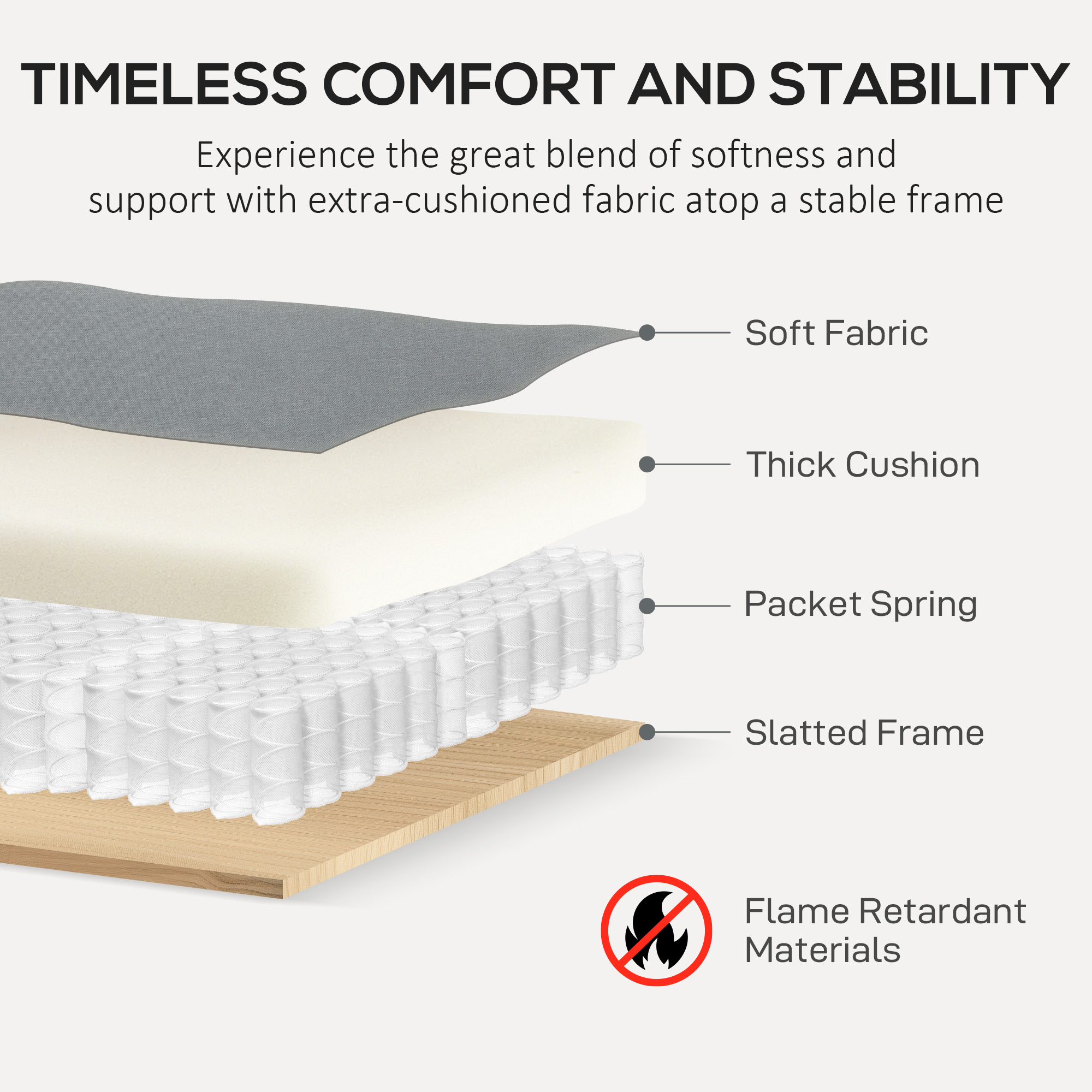 - Packet spring design with think padding ensures comfortable, stretchy support