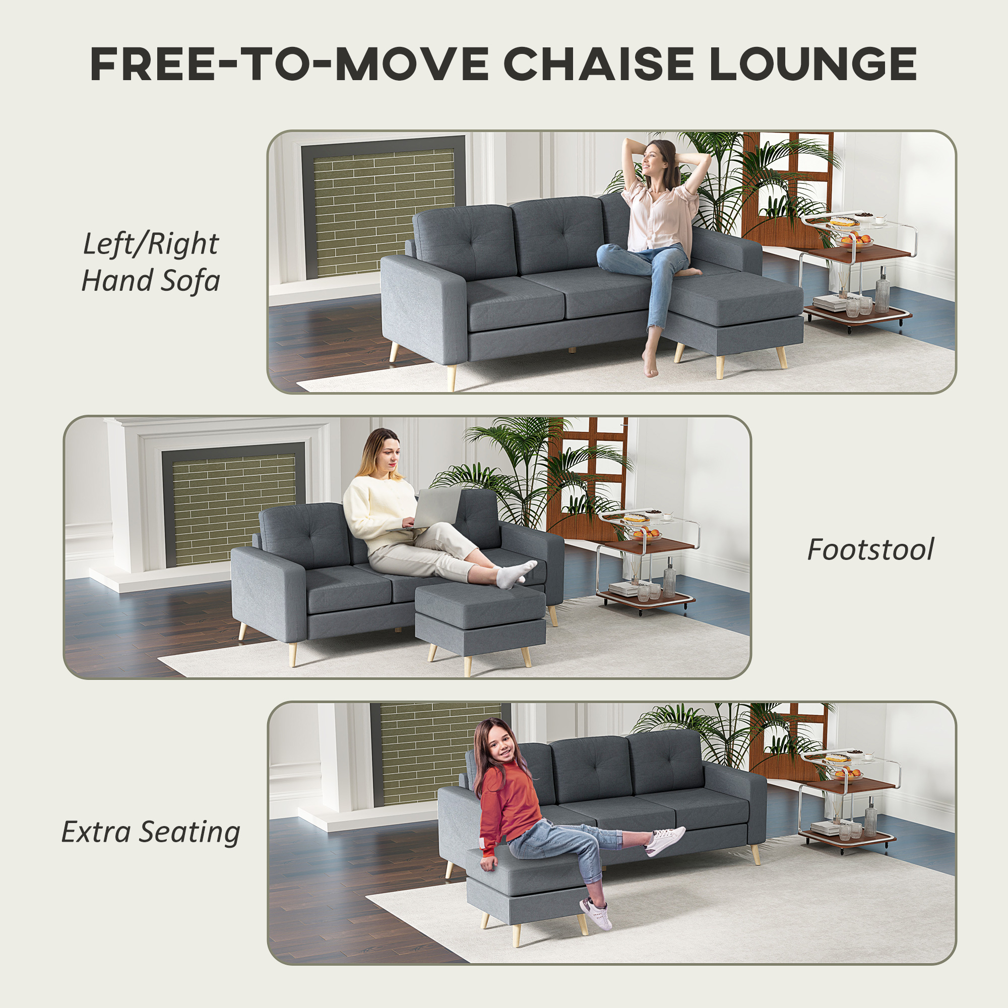 If you love to lounge at home, then this 'L' shaped sofa from HOMCOM is made for you. Its large 3-seater size is great for relaxing with family and friends and the corner shape fits all types of rooms. Thick sponge filled back and seat cushions are extremely comfortable, with the linen-look upholstery smooth to the touch. It's finished with rubber wood legs which ensure the sofa is balanced and stable at all times. It's time to sink in and love your home more than ever before.