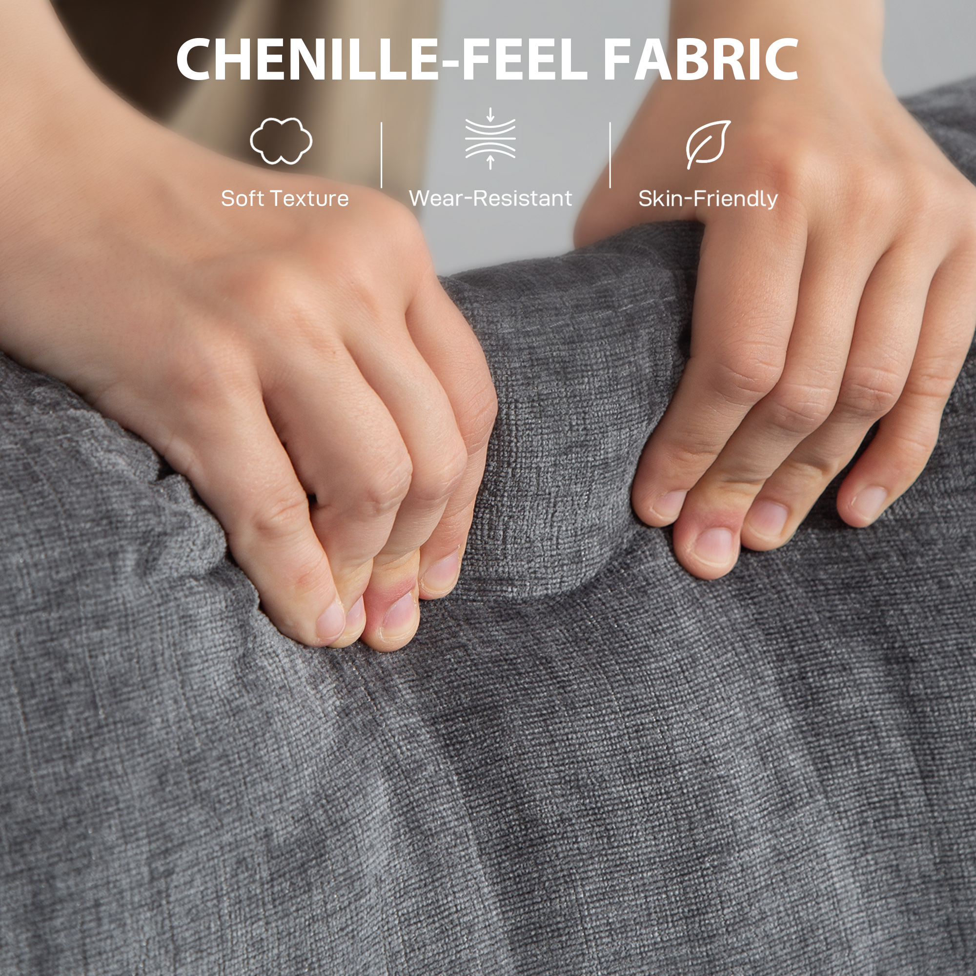 - Chenille-feel fabric upholstery offers a luxurious touch