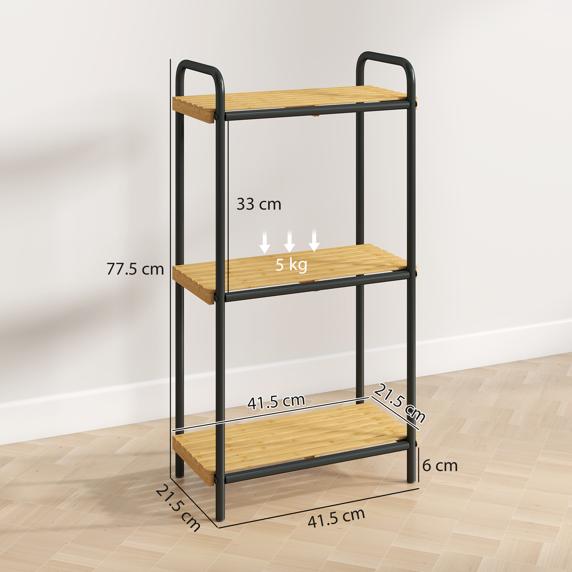 - Maximum Load: 5 kg (per shelf), 15 kg (total)