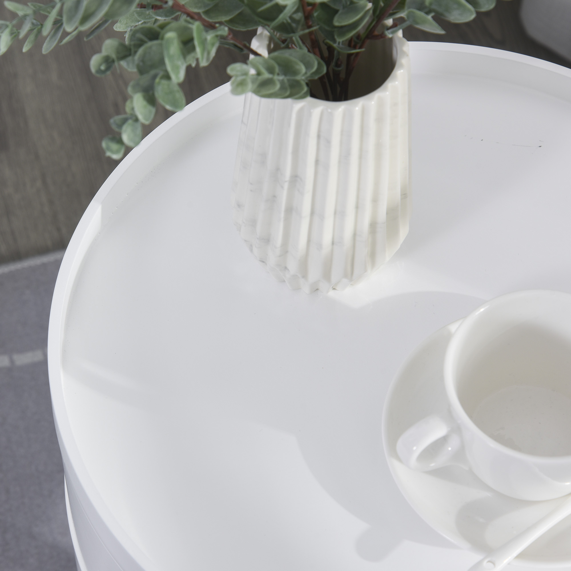 Style and storage 2 in 1-bring this white end table, from HOMCOM, into the living room and bedroom for something which looks fantastic and keeps your home tidy. The table top and middle storage component are removable, so you can chose the combination as you like. The top can be used alone as a raised-edge tray - great for tea times. Simple style in versatile white, works well with a range of interiors.