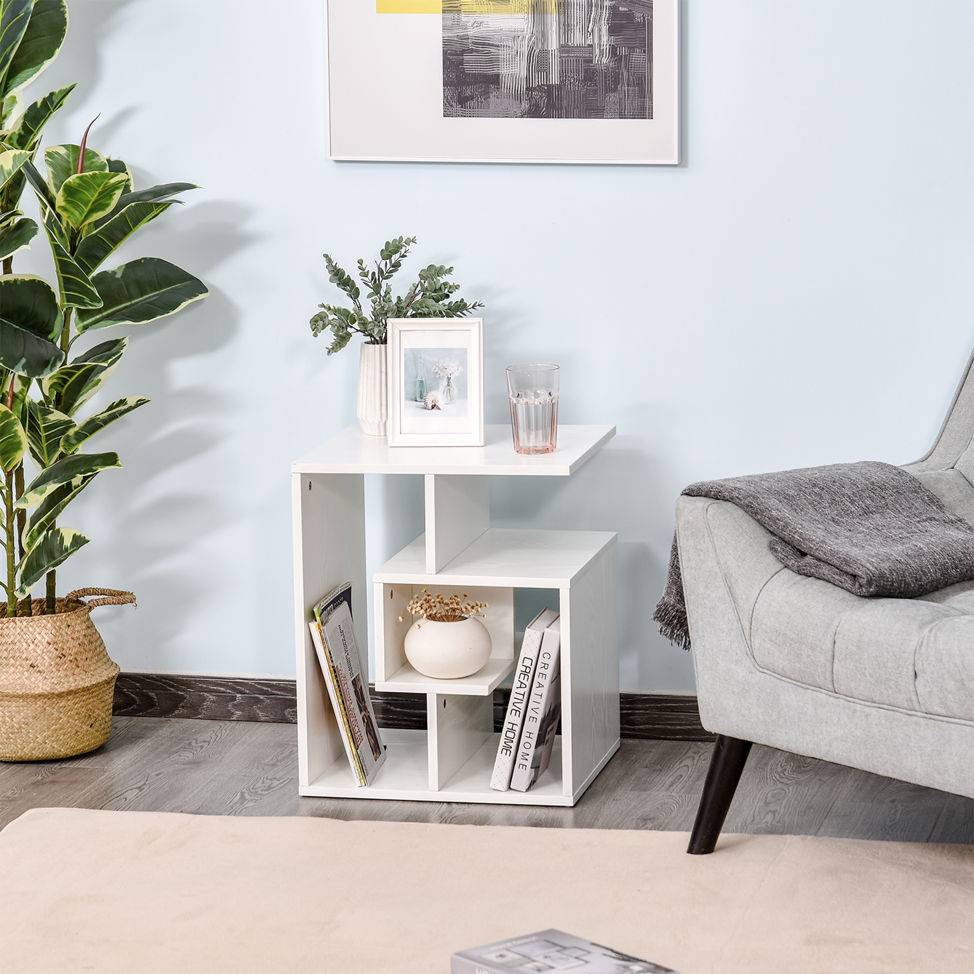 This three-tier small side table from HOMCOM is a great addition to any living room. It's made from particle board for durability, with a smooth surface to keep clean easily. This bedroom table, cut into a cubic shape, comes with three differently shaped shelves inside for a unique look - room for your books, magazines, newspapers and more. A compact size in a cool design, this is a great furniture addition for all home and office spaces.