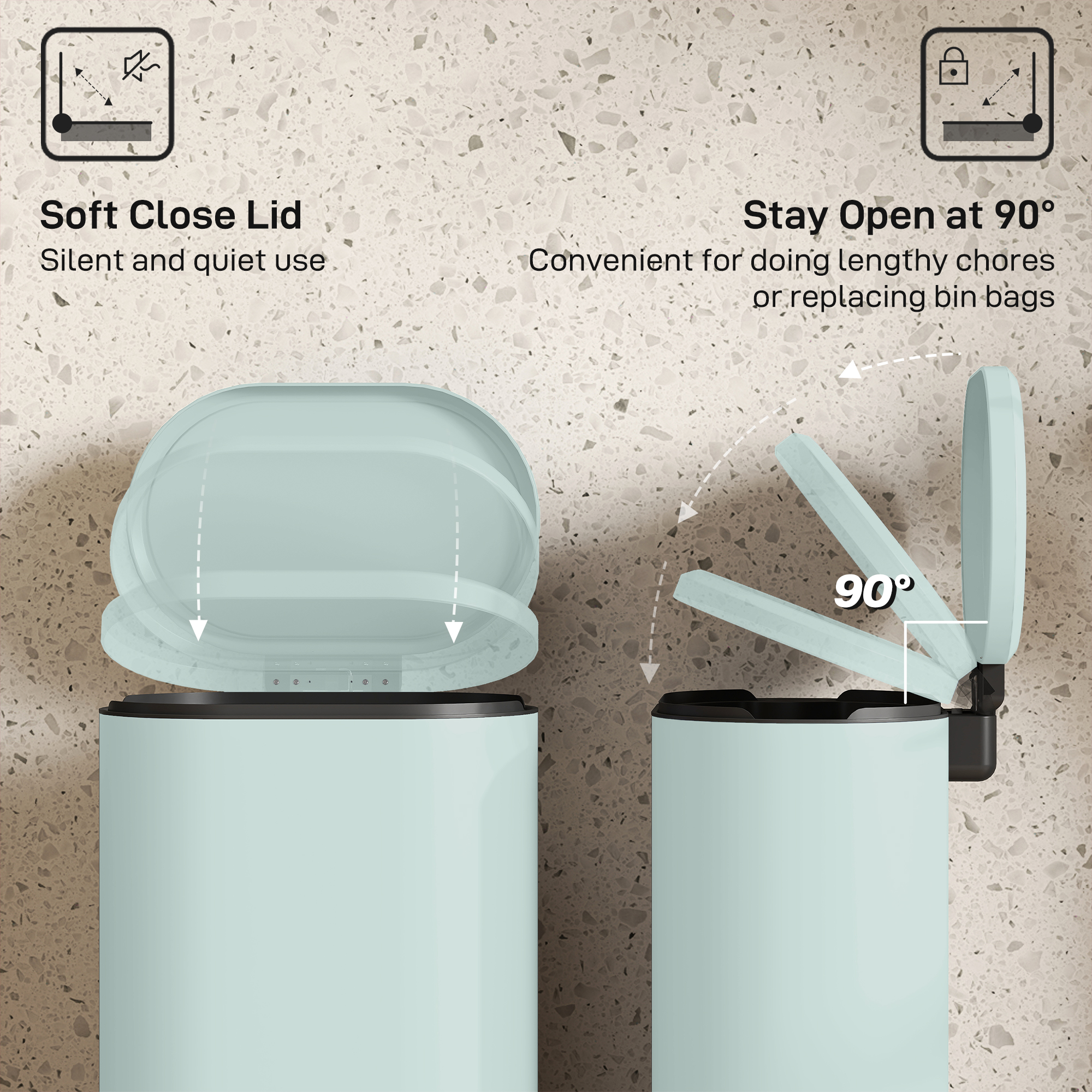 This HOMCOM 30L pedal bin is an essential for every clean and tidy kitchen. It's fitted with a silent soft-close lid so it doesn't bang and distract you; also stays up to a 90° angle for easy filling and bin changing. Made from fingerprint-resistant metal, made into a modern curved shape - a sleek addition to every home.