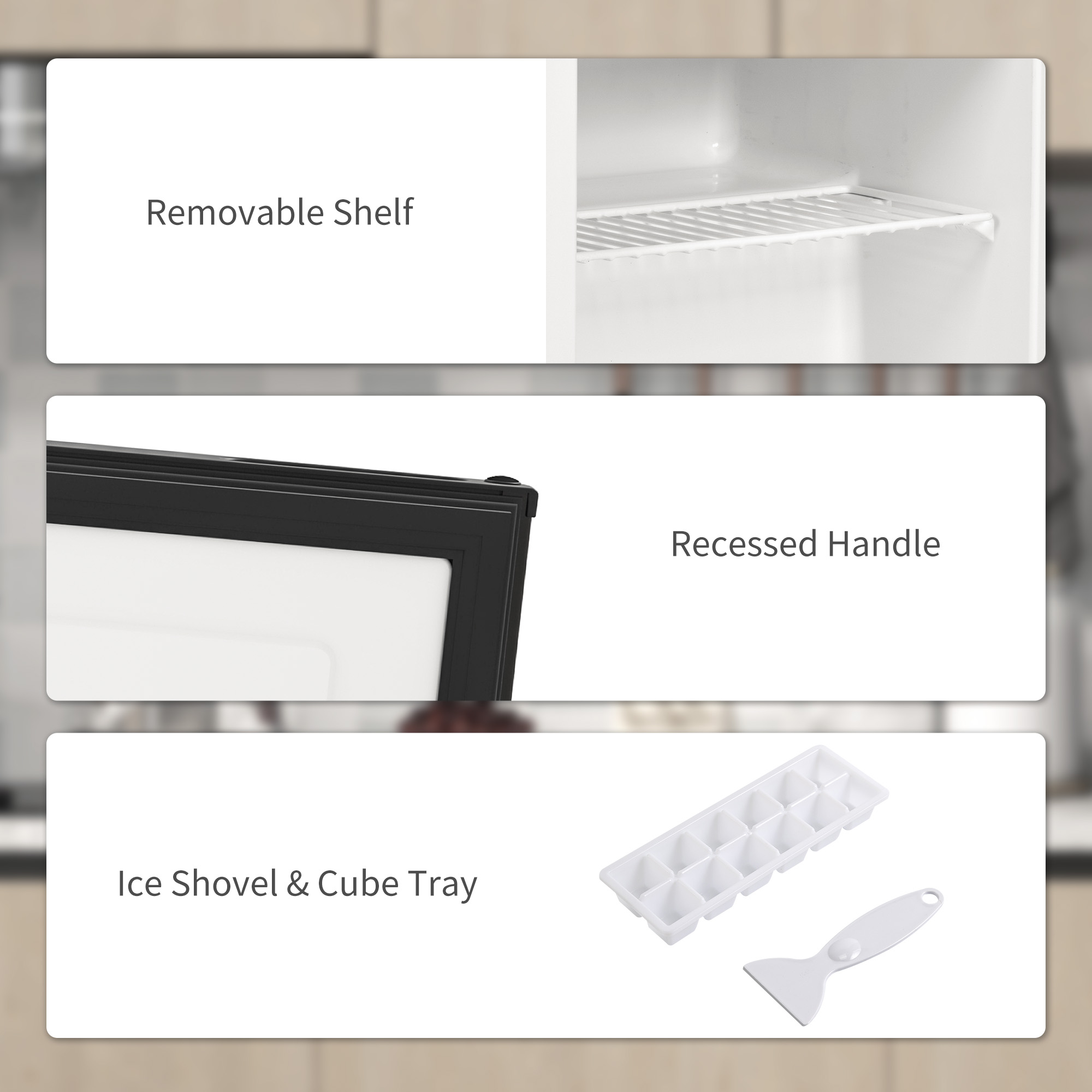 - Comes with 1 x ice scoop and 1 x ice cube tray