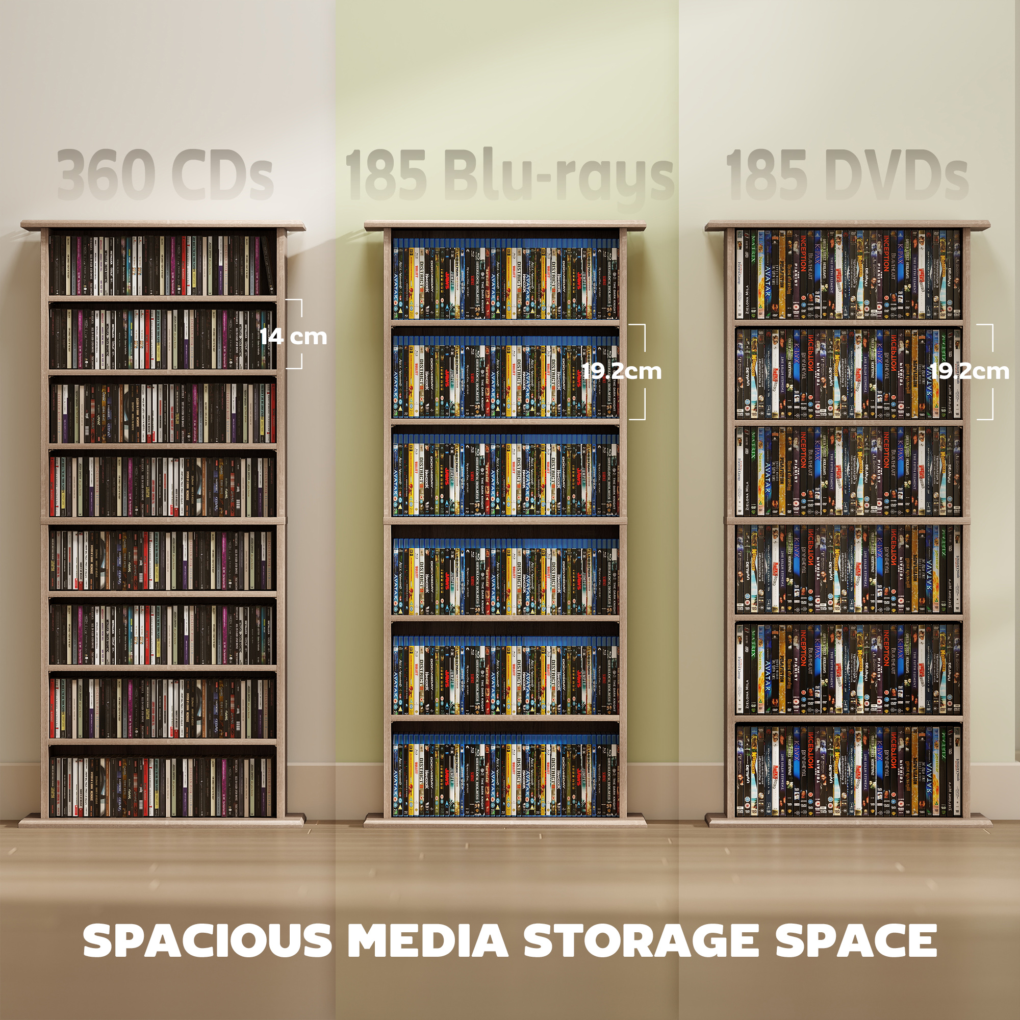 This HOMCOM DVD rack showcases 8 shelves, with 6 adjustable shelves: room for up to 360 CDs, 185 DVDs or 185 Blu-rays. Made from particle board, the CD shelf's structure is reliable and is made to be used every day. Coming with anti-tipping straps to fix to a wall, so our HOMCOM DVD shelf doesn't fall forwards and cause damage.