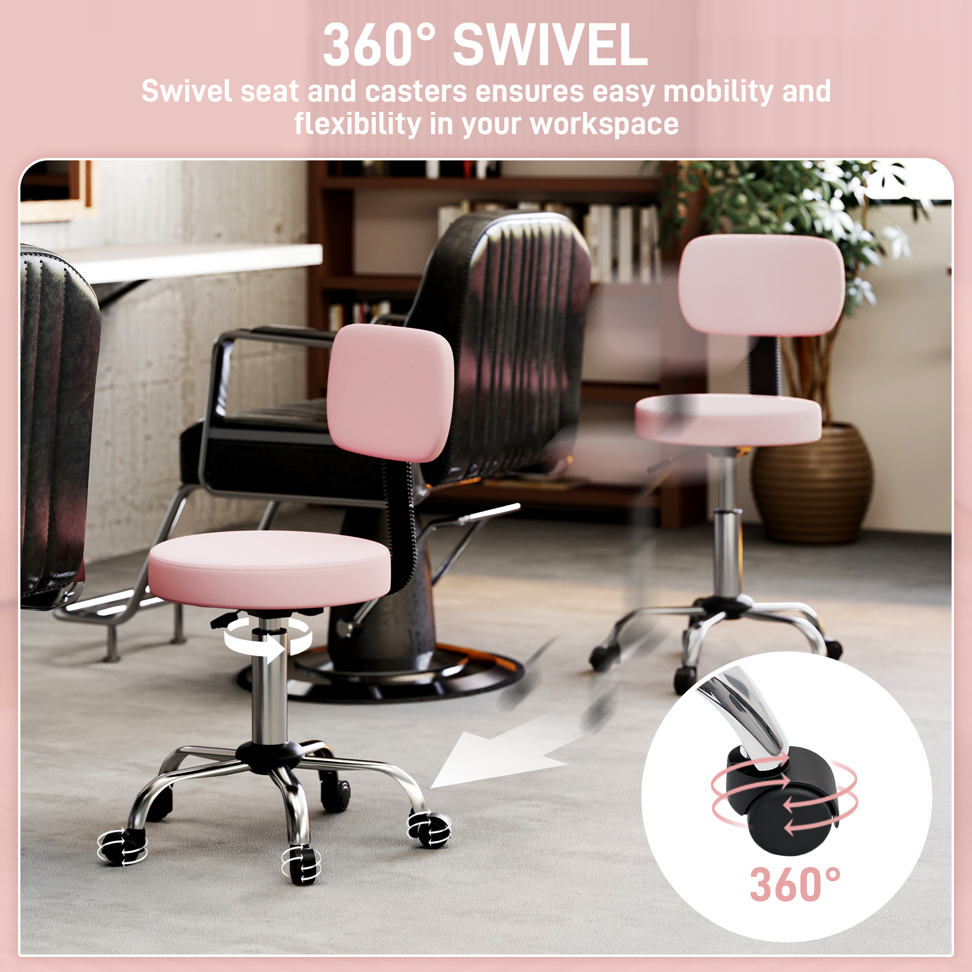 A flexible chair, to give you flexibility for the task - this HOMCOM swivel stool. Fitted with five wheels and with a 360° seat, this moves around freely and easily. Thanks to the padded seat and back panel, this is a comfortable and supportive piece, finished with faux leather upholstery for a sleek touch.