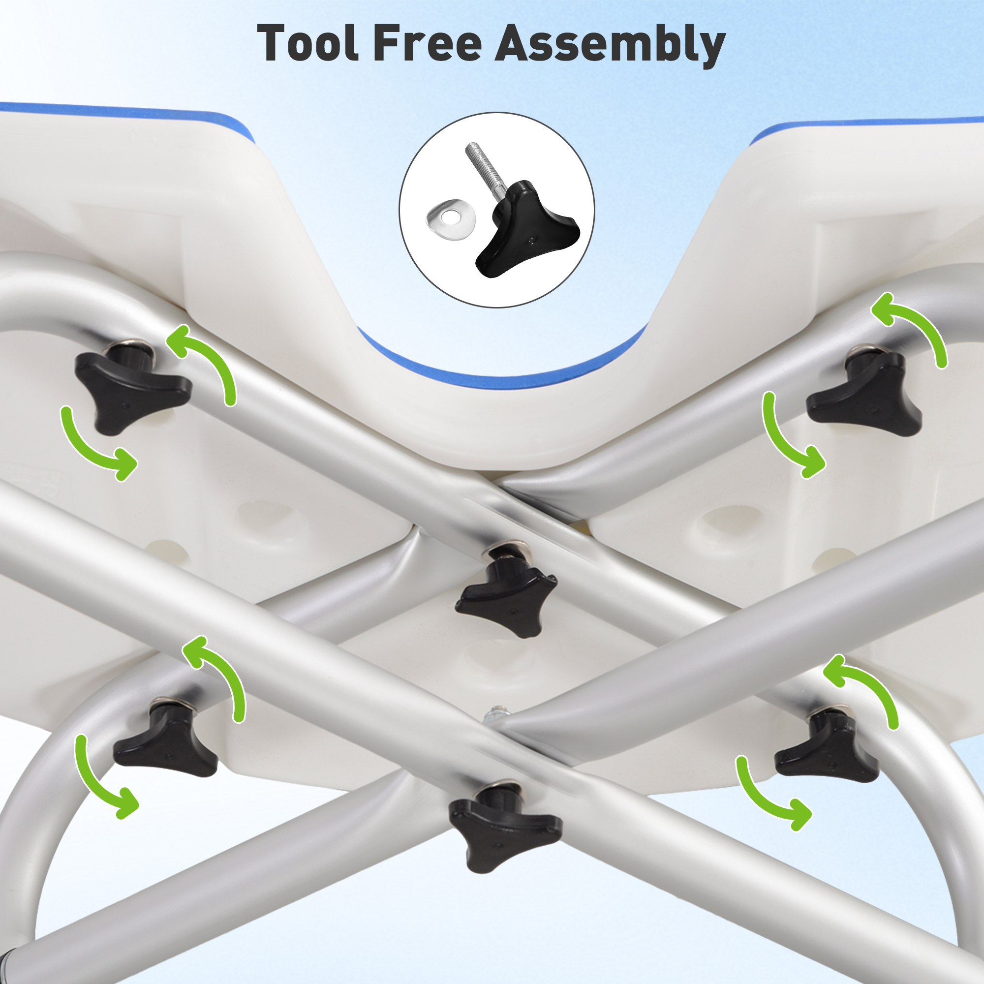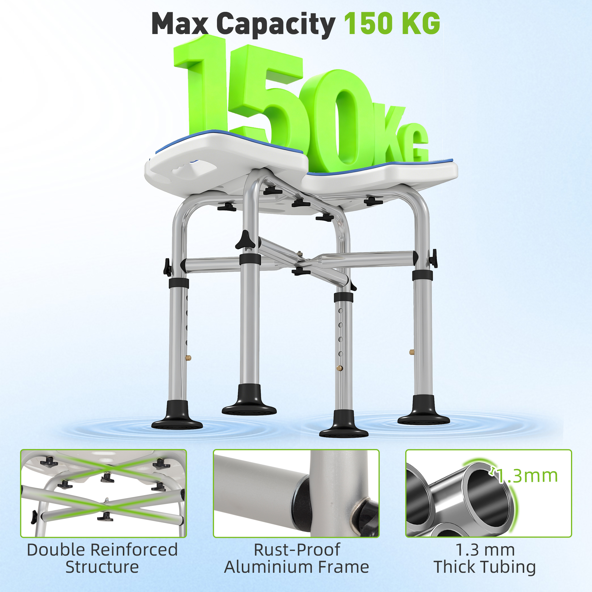 Safe, easy washing for anyone - especially those who need extra help, thanks to this HOMCOM shower stool. The rust-resistant aluminium frame is strong and supports up to 150kg. The height is adjustable from 39cm to 51.5cm, so you can sit at the level you want. The U-shaped seat and built-in handles are convenient. Your new shower essential.