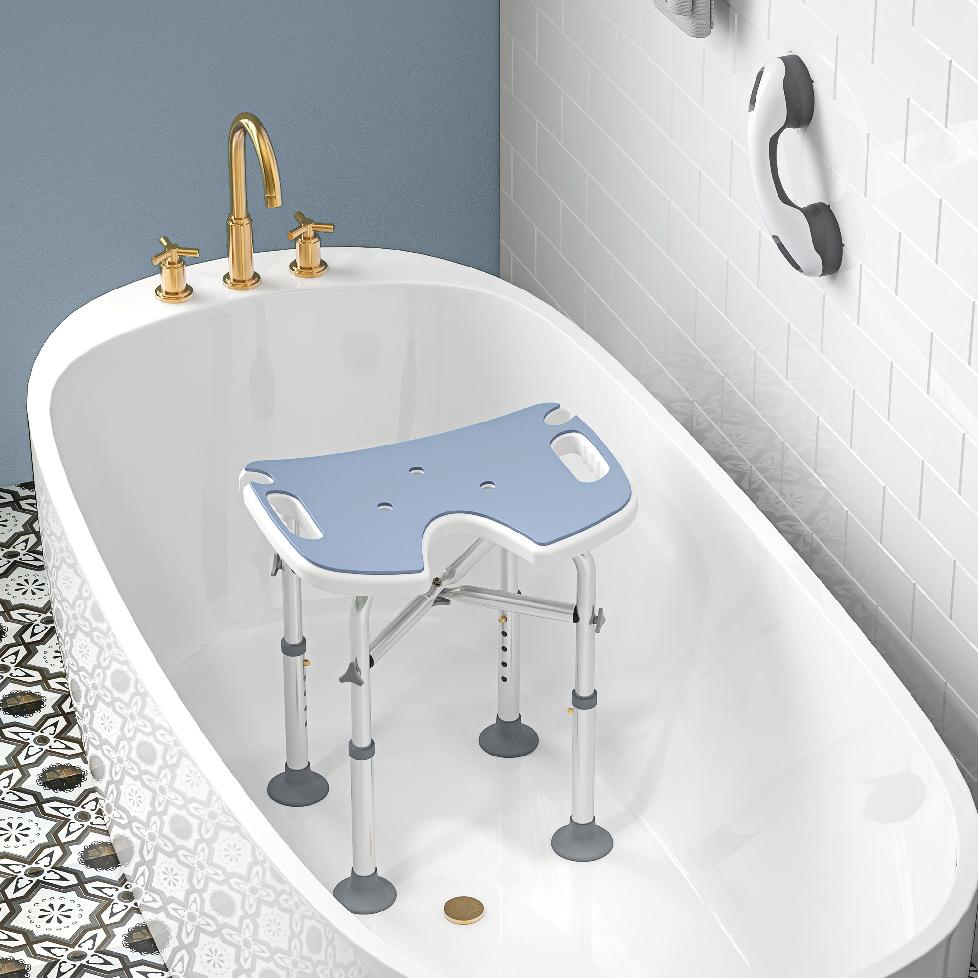 Safe, easy washing for anyone - especially those who need extra help, thanks to this HOMCOM shower stool. The rust-resistant aluminium frame is strong and supports up to 150kg. The height is adjustable from 39cm to 51.5cm, so you can sit at the level you want. The U-shaped seat and built-in handles are convenient. Your new shower essential.