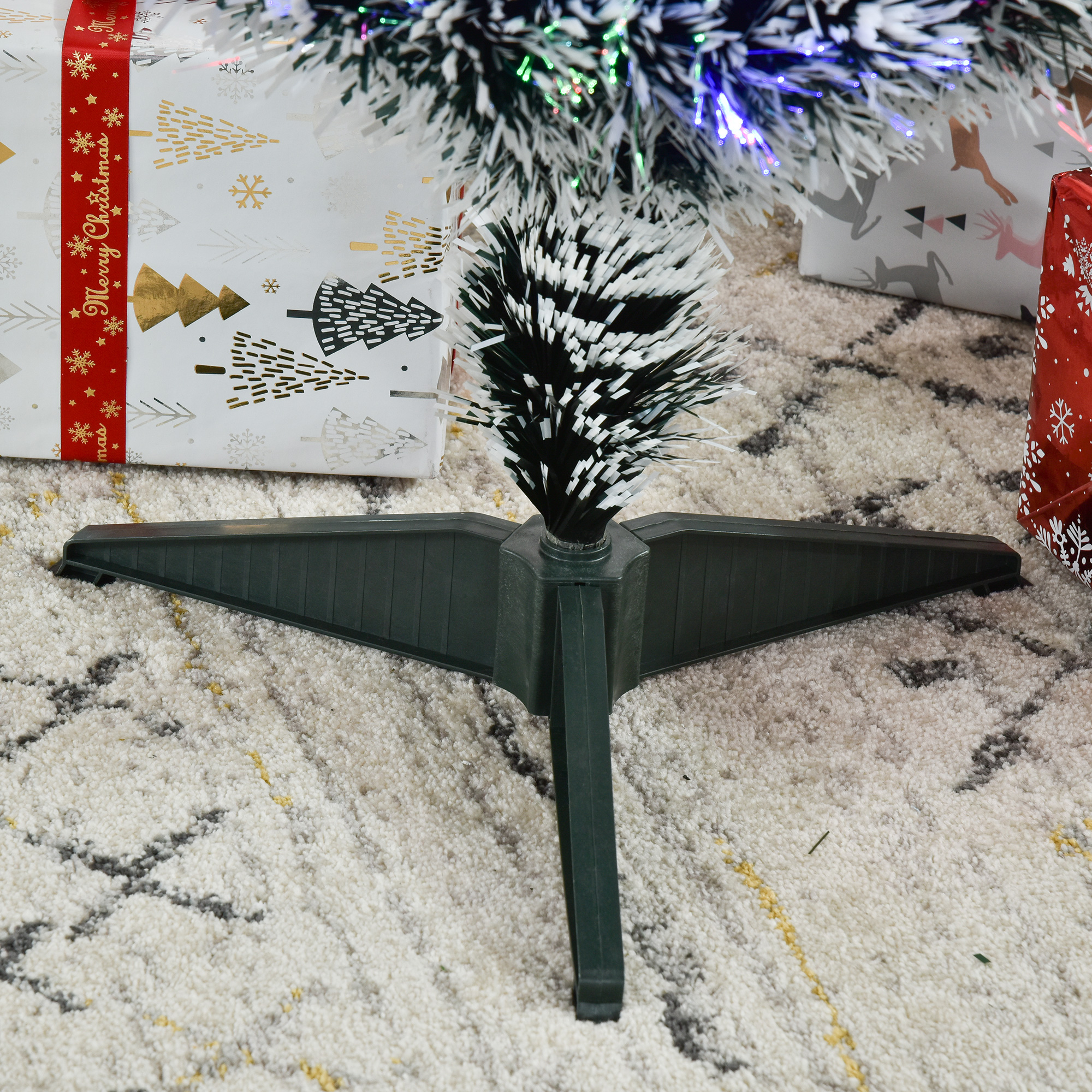 This holiday season, spend more time celebrating and less time maintaining and cleaning up with this Tall Pre-lit, Artificial Christmas Tree from HOMCOM. With this particular model, built in fiber optics and LED light that complement each other in a beautiful sparkling display to give off an authentic holiday feel. Each fiber optic branch and LED light create a striking lighting display that really makes this tree the centerpiece of the holiday.