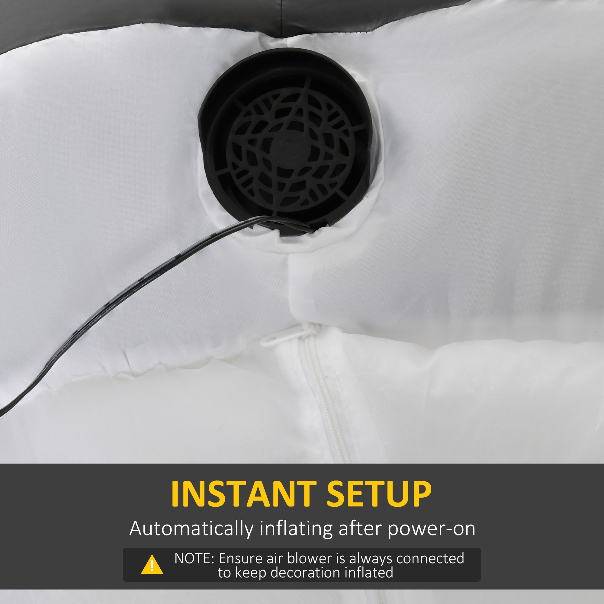 - 1: Ensure air blower is always connected to keep decoration inflated