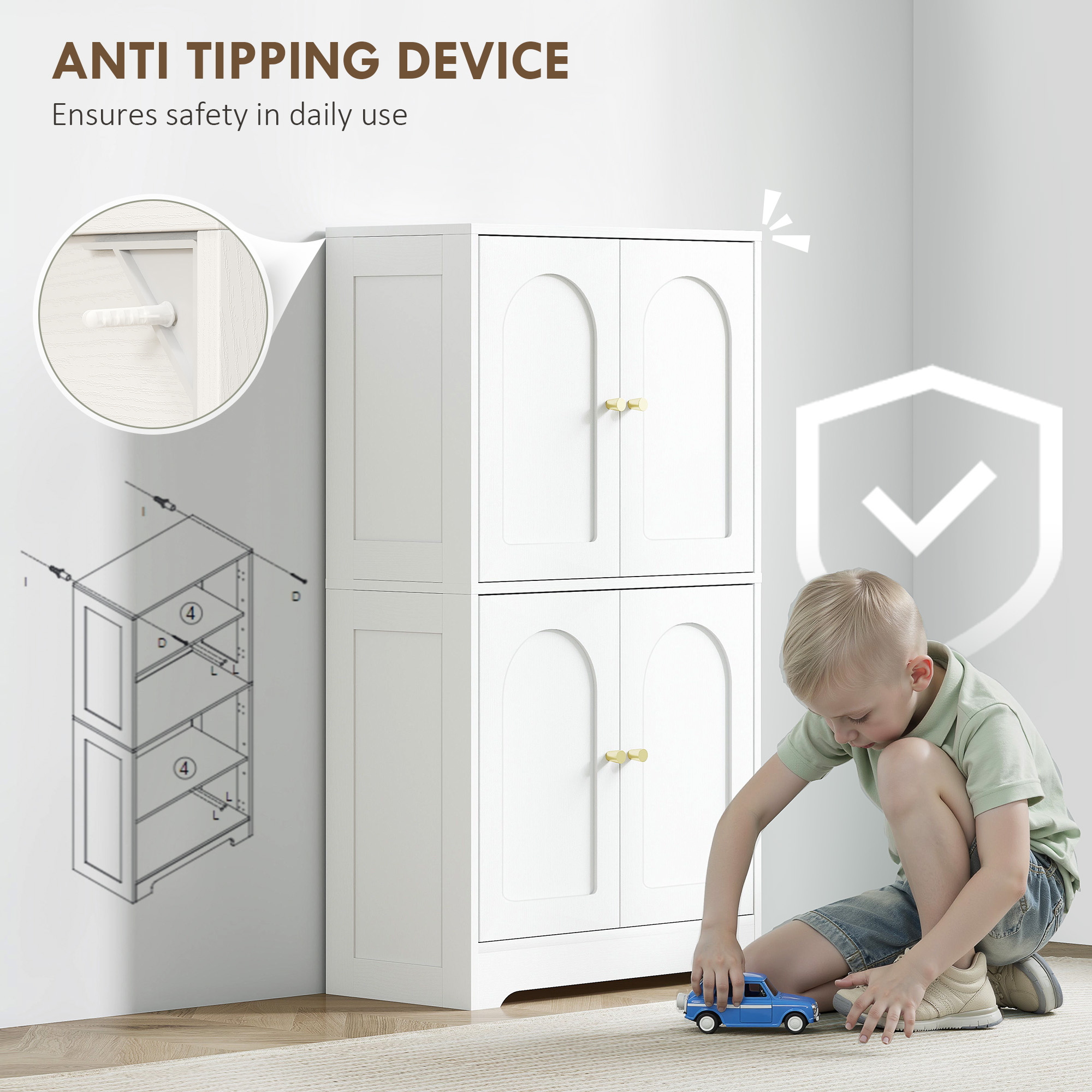 - Anti-tipping straps enhance safety and stability