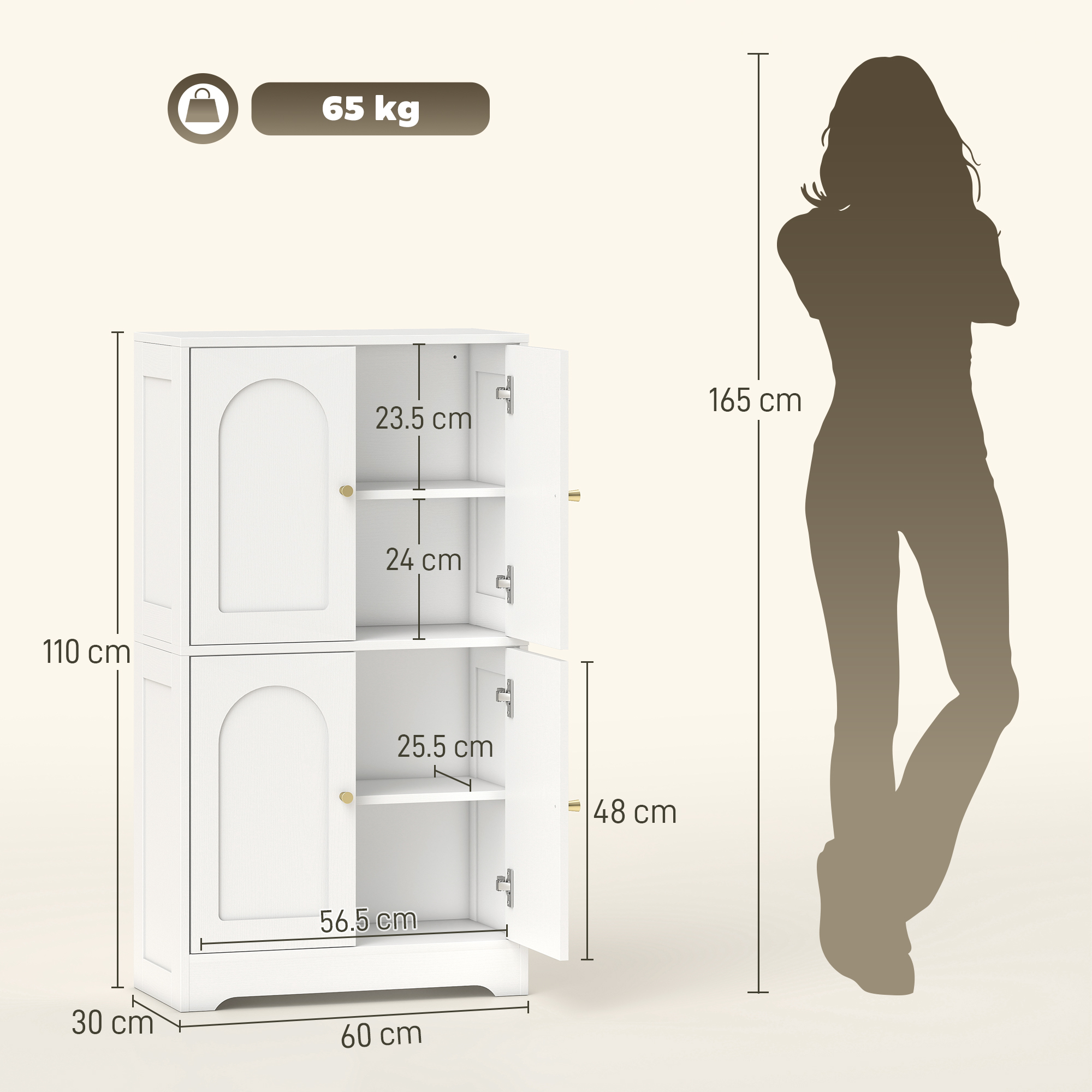 Transform your space with the HOMCOM pantry cabinet, where style meets functionality. Adorned with arched curve door panels and chic gold tone handles, this white kitchen storage cabinet enhances any room. Enjoy organised bliss with two-tier cupboards and adjustable shelves, great for any kitchen, bathroom, or hallway. Let this kitchen storage unit be your go-to solution for turning clutter into calm, making daily life just a little bit more delightful!