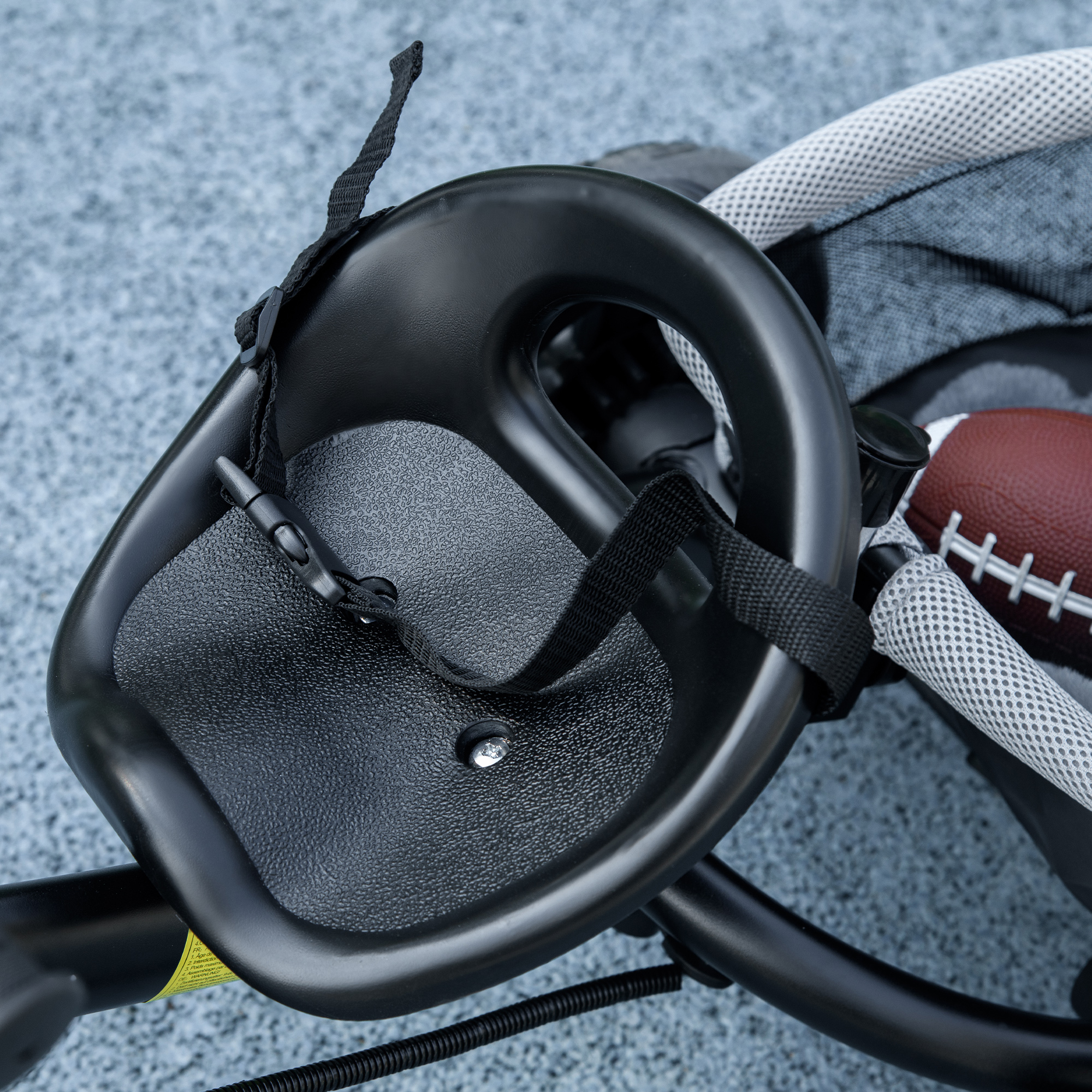 - Seat with a guardrail and 5-point seat belt safety belt to keep your child strapped in