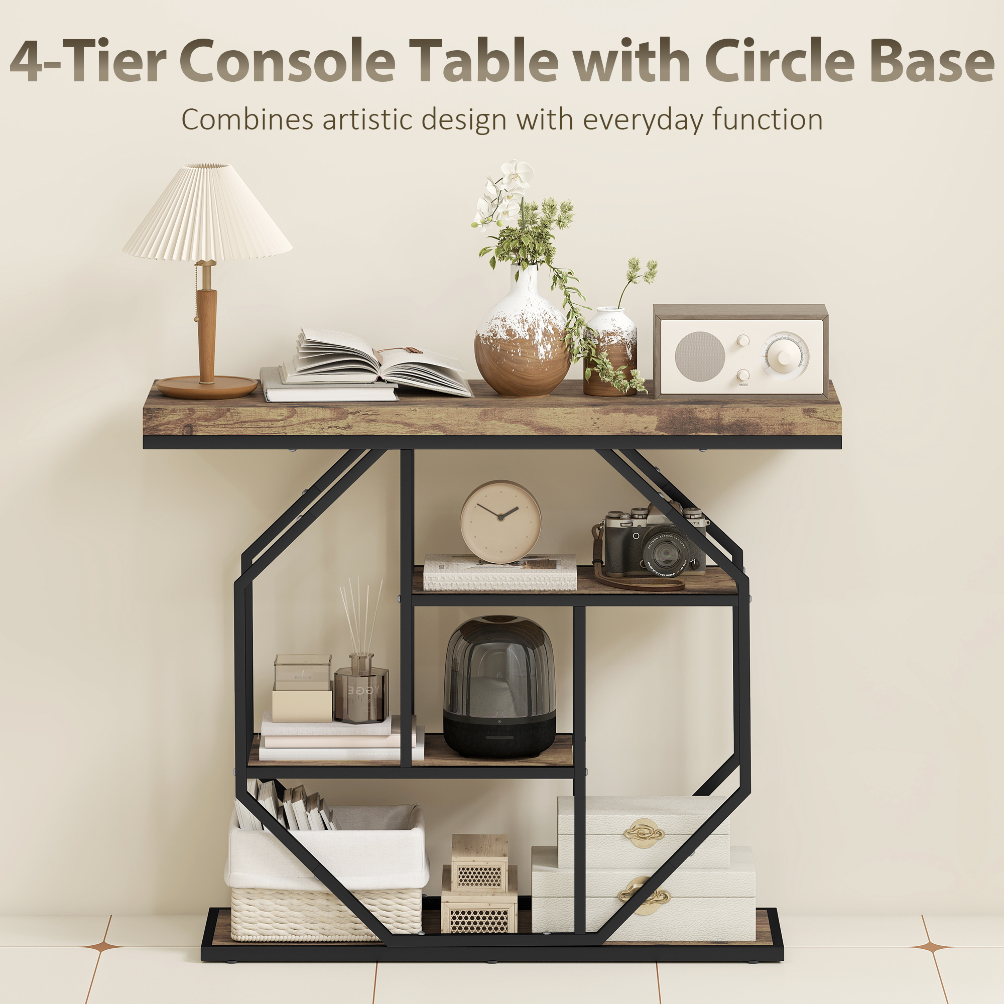 Tired of a cluttered, uninspiring entryway? A messy first impression can make your whole home feel chaotic. This HOMCOM entryway table with storage transforms your space. Its bold industrial design and vintage-style shelves make a statement, while the thick tabletop easily supports heavy decor. Four-tier shelves on this console table neatly organise your essentials, creating a welcoming and stylish first impression that you and your guests will appreciate every day.