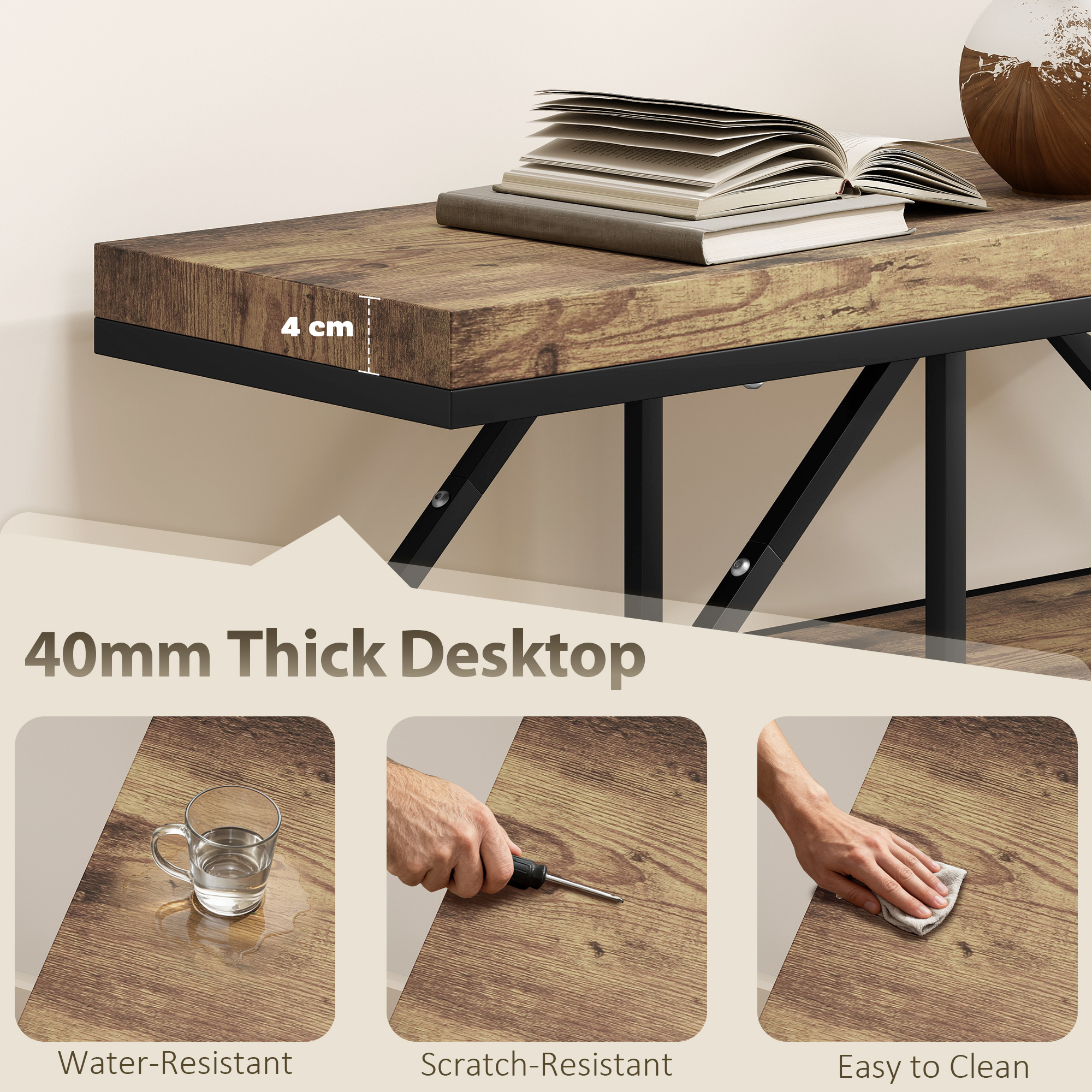 - Extra-thick 4 cm tabletop with steel frame supports up to 100 kg