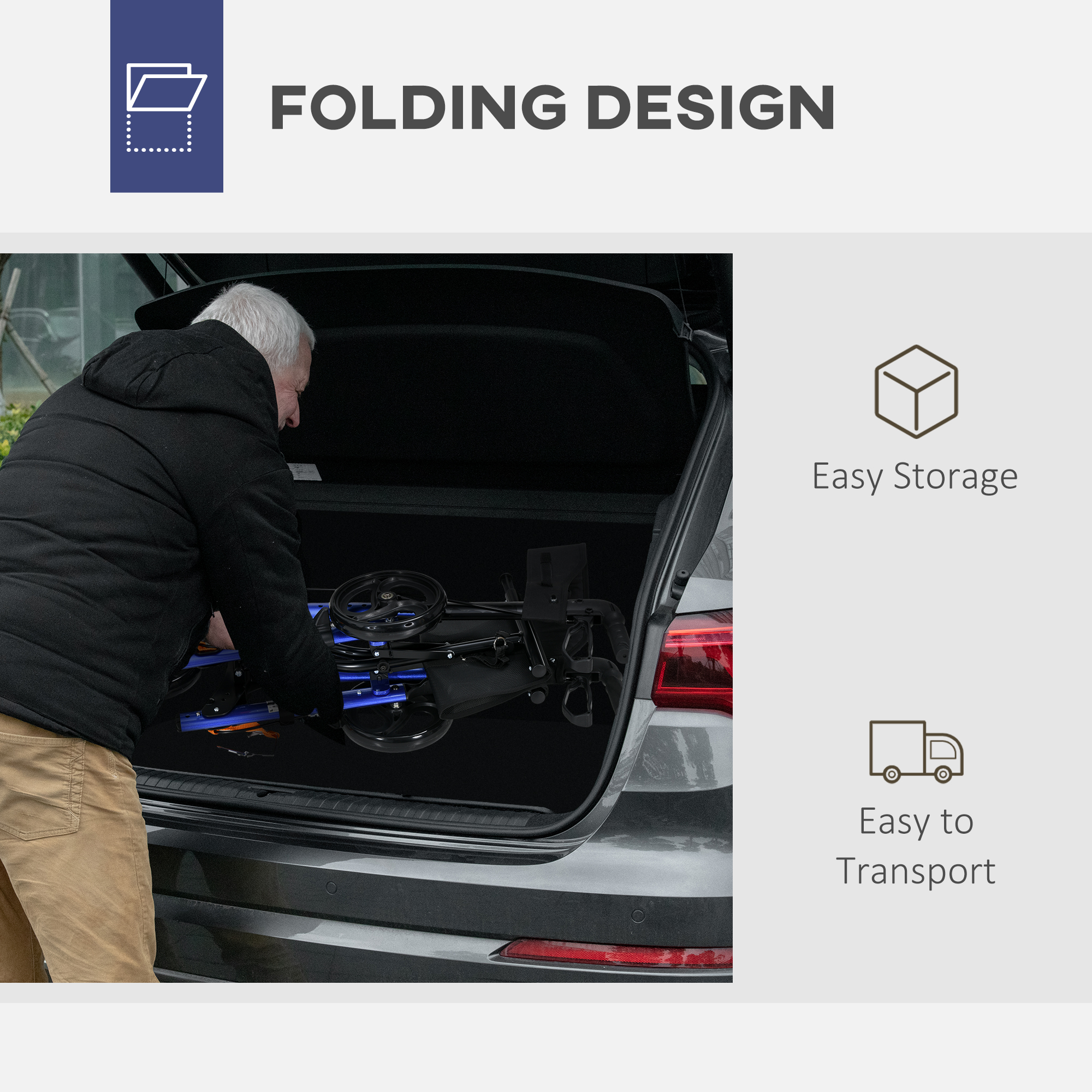 - The rear legs of the rollator walker are foldable