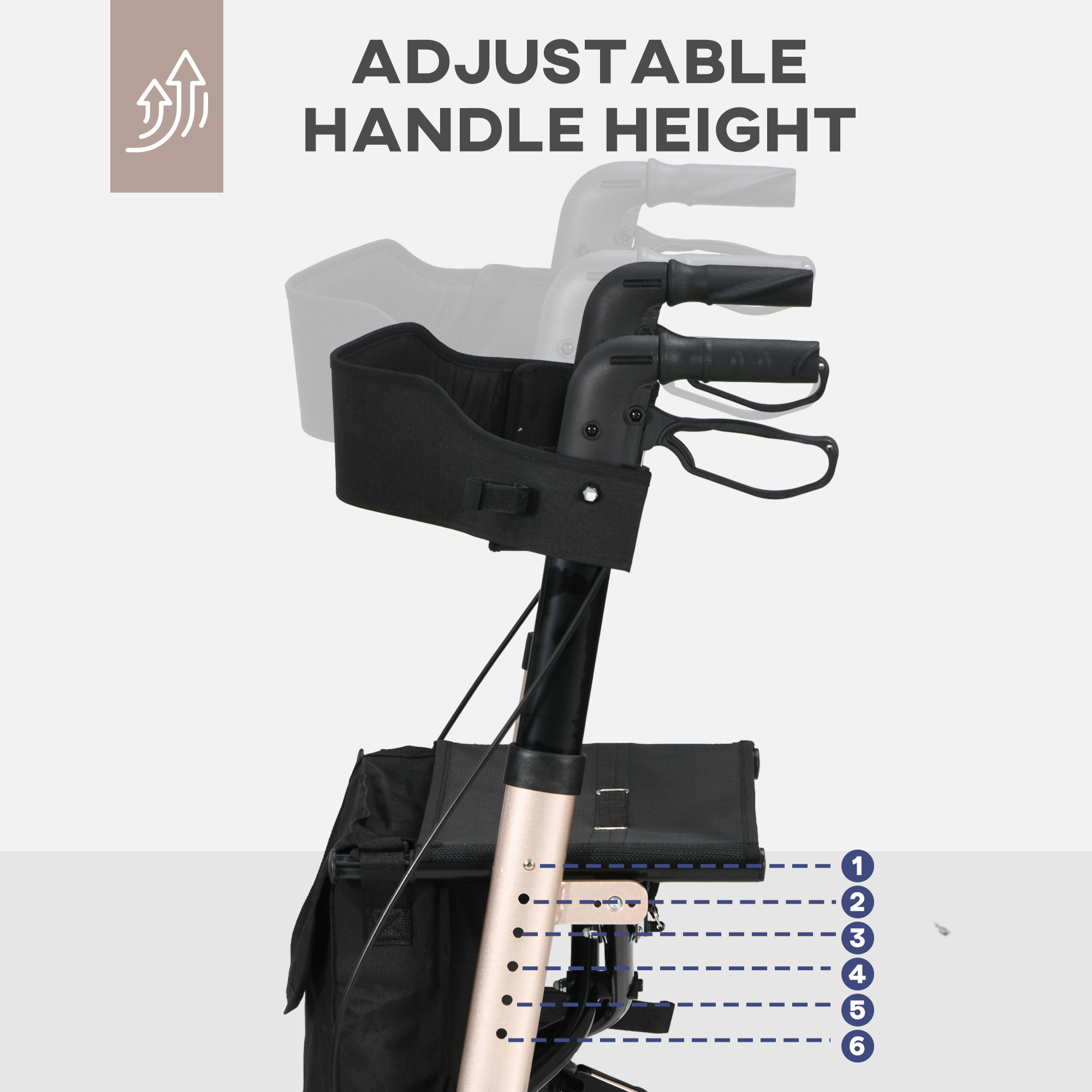 - Six-position adjustable height to suit different people