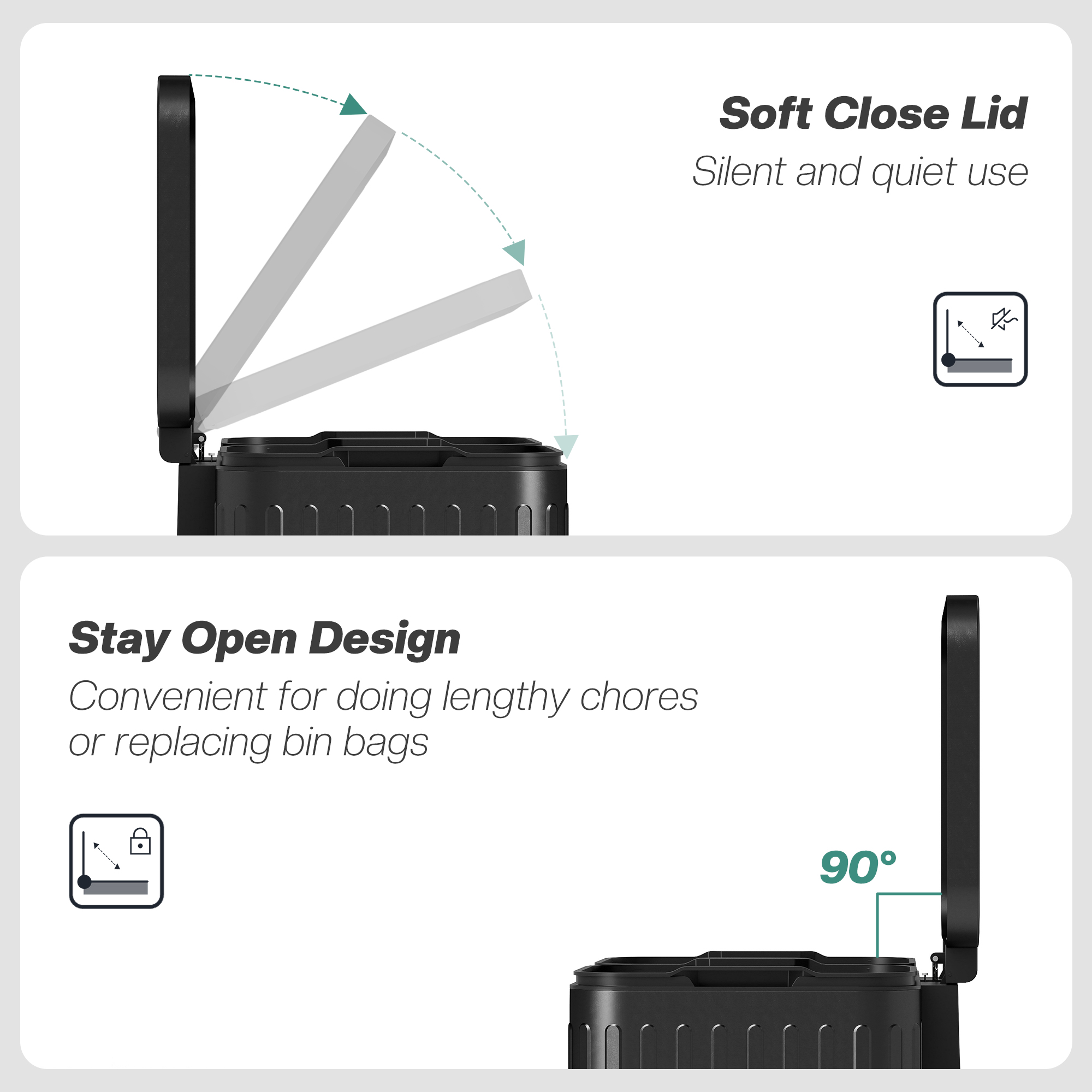 - 2 x 20L capacity: trash bin holds plenty and can separate items however you need