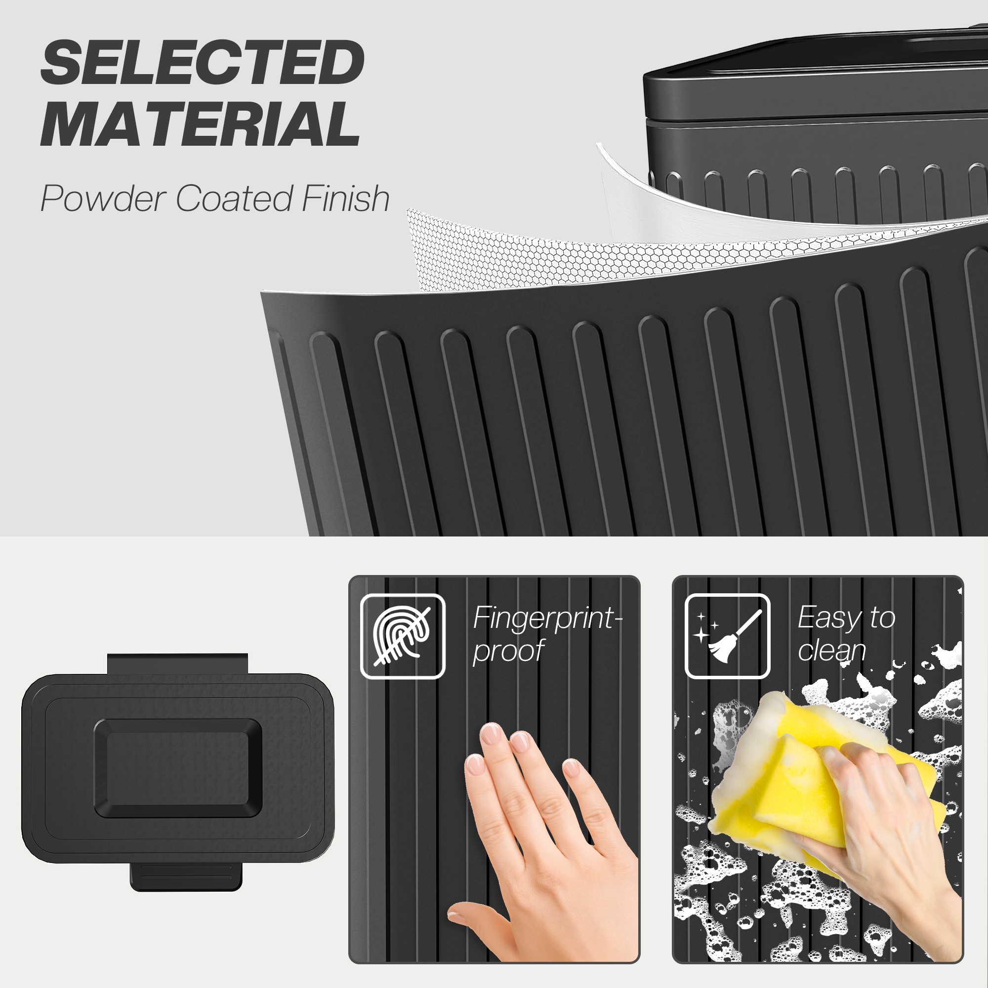 - Powder coated metal structure makes double bin tough. Resists fingerprint marks for hygiene