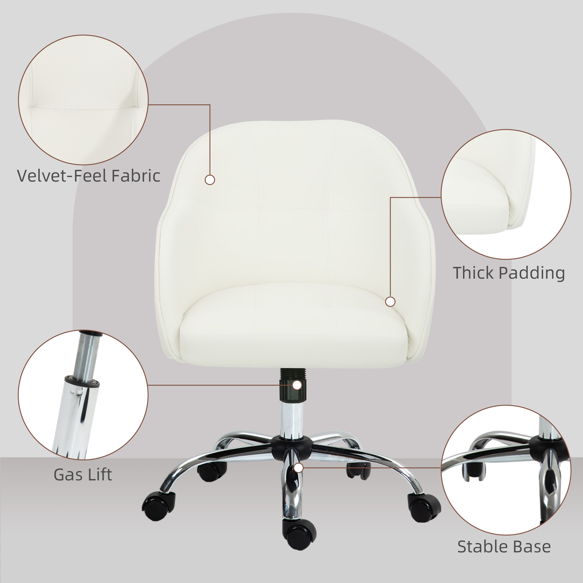 Snuggle into the work day with this HOMCOM office desk chair. The seat is wrapped in velvet-feel upholstery: it's super soft. You can adjust the seat height between 46-56 cm, to sit at a level you want. Filled with sponge to sit comfortably, with a tall back and armrests for support, this small office chair is complete with five wheels to move it around easily.