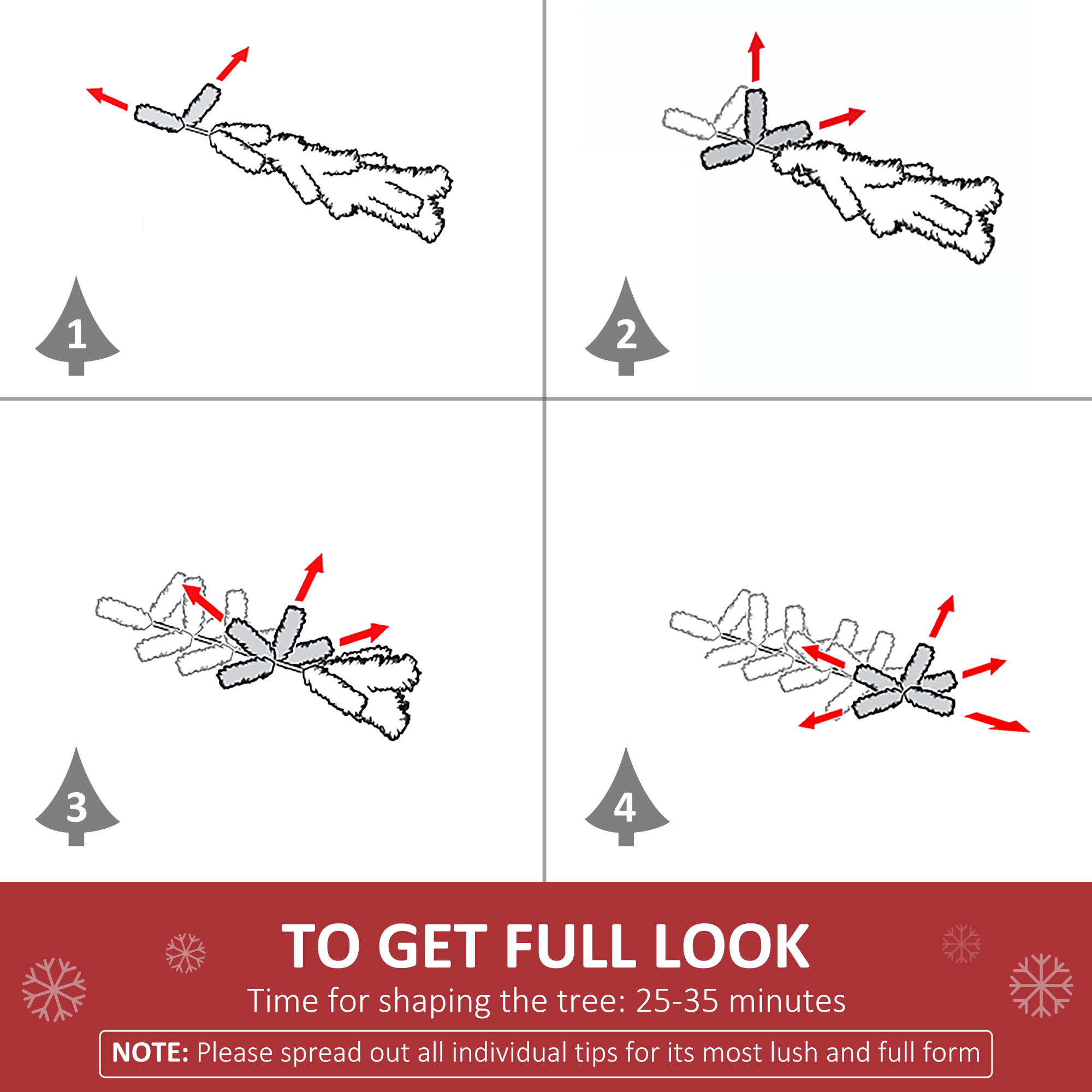 - In order to get a full appearance, please spread out all individual tips to get the best possible look from the tree, suggest you to take 25-35 minutes to shape the tree