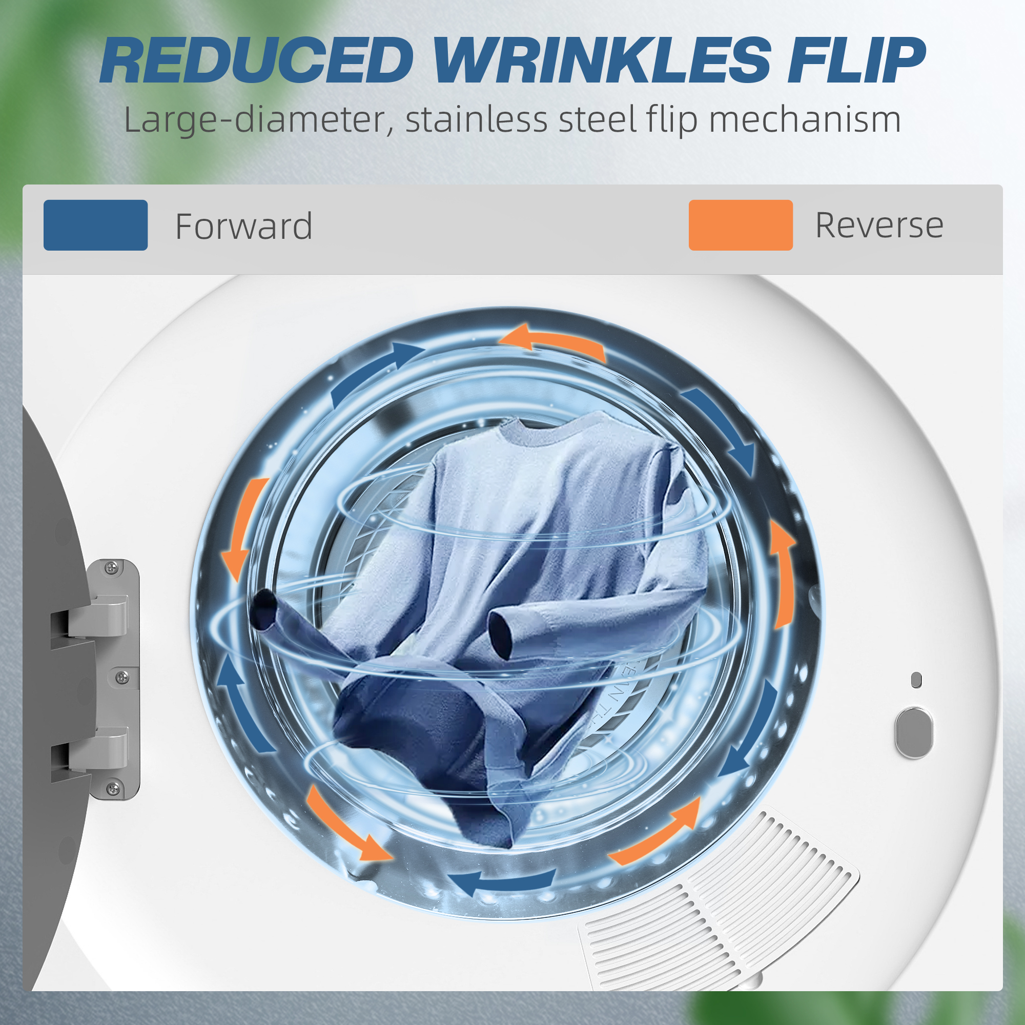 Tired of damp clothes piling up in your small flat and worrying about germs on your family's laundry? The HOMCOM 800W small tumble dryer with 4kg capacity provides a smart space-saving answer. Its flexible installation saves valuable space, while the 60°C sterilising cycle helps remove bacteria for hygienic, fluffy clothes. Compact yet efficient, it keeps your home tidy and gives you peace of mind with fresh, clean laundry for your loved ones.