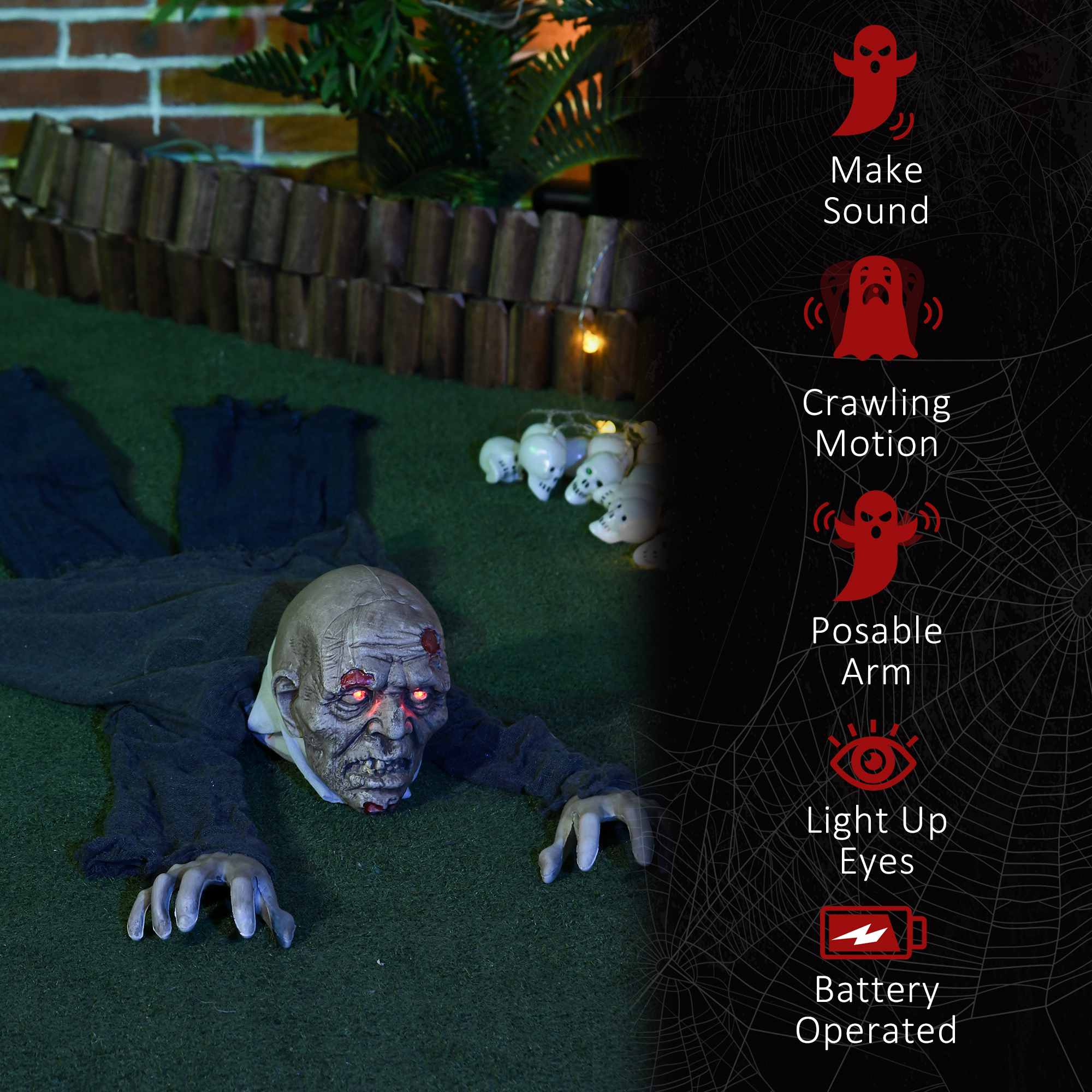 The scary Halloween decoration would like to have some fun. When trick-or-treaters approach, he senses them and the fun starts! His eyes blink a wicked red light and make creepy sounds. Desperate for entertainment, he crawls to terrify them. If you get our HOMCOM large Halloween decoration, trick-or-treaters will think twice about taking too many candies from your candy bowl.