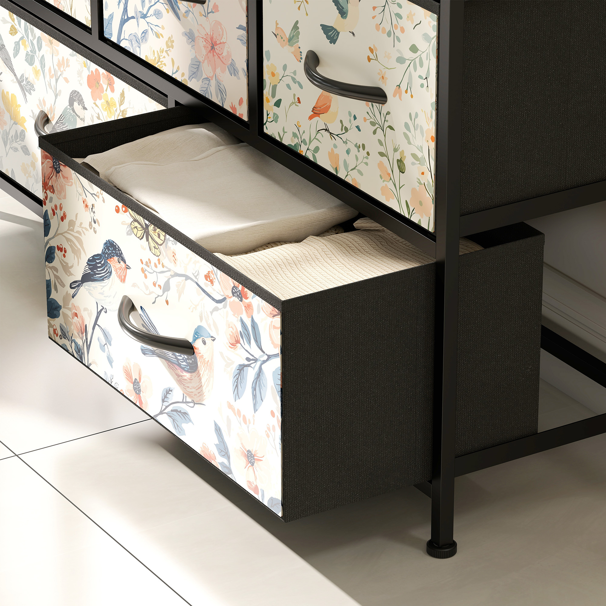 Transform your space with the HOMCOM chest of drawers, where style meets functionality! Adorned with exquisite patterns on each drawer panel, this bedroom drawers add a touch of elegance to any room. With five fabric drawers that are both removable and foldable, organising has never been easier. Great for bedrooms, living rooms, or home offices to keep your essentials tidy.