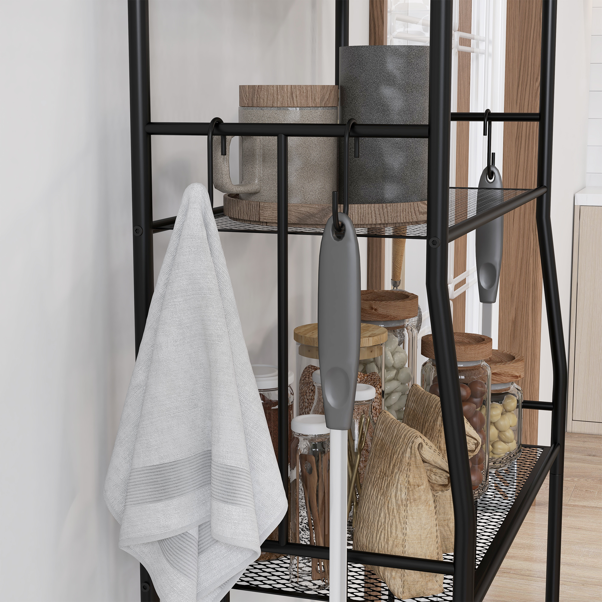 Storage and style for the kitchen, with this HOMCOM shelving unit. It showcases five mesh shelves, offering plenty of space for all kitchen essentials. The four hooks provide extra room on the side, and can be moved to where you wish for complete versatility. The steel frame means a strong structure for full support, complete with adjustable feet and included anti-tipping straps.