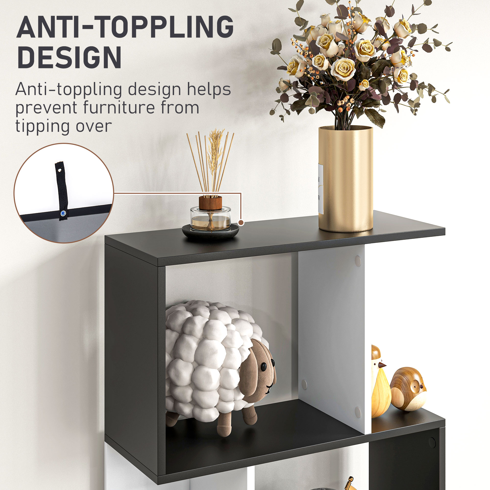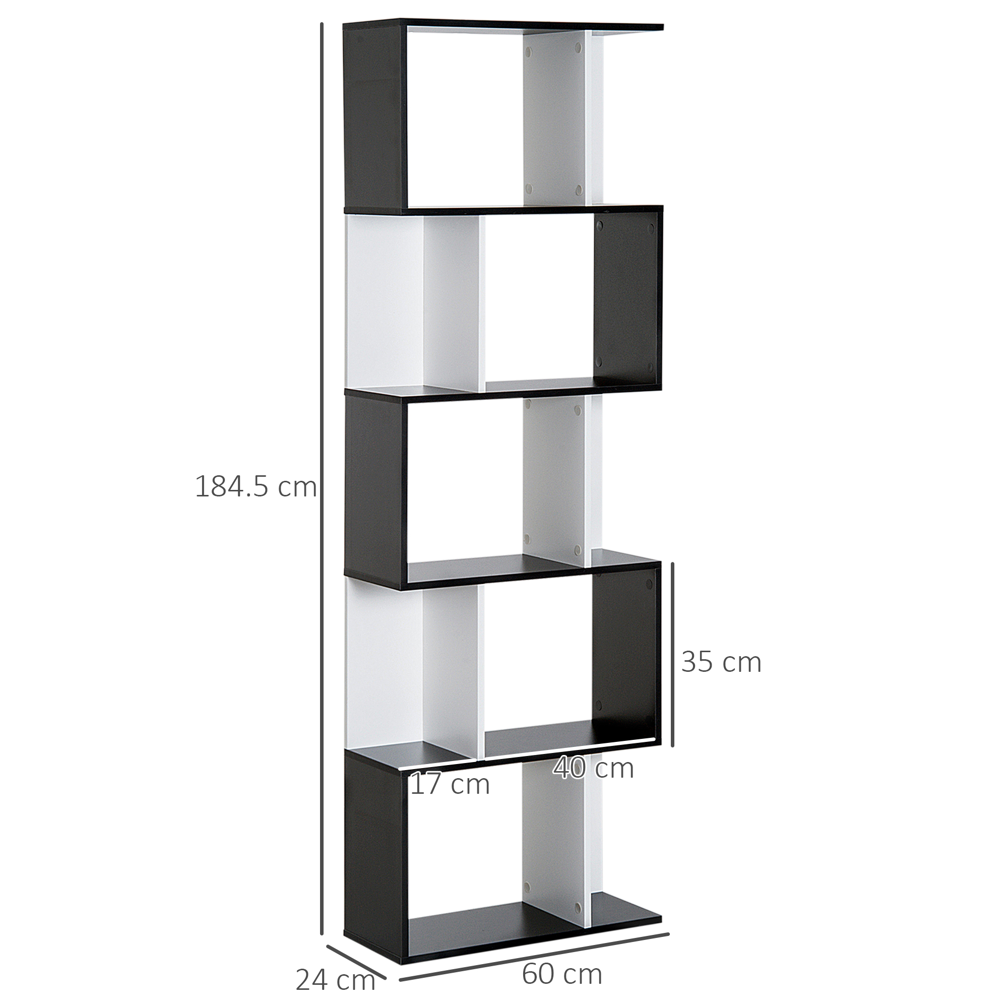 Tired of the same old look? Break away from the norm with the unique and contemporary style of this S-shape bookcase from HOMCOM. Five shelves of storage make it easy to display your favourite books, photos, collectables and more. Most important, thanks to an open-back design, it doubles as a bookshelf and room divider.