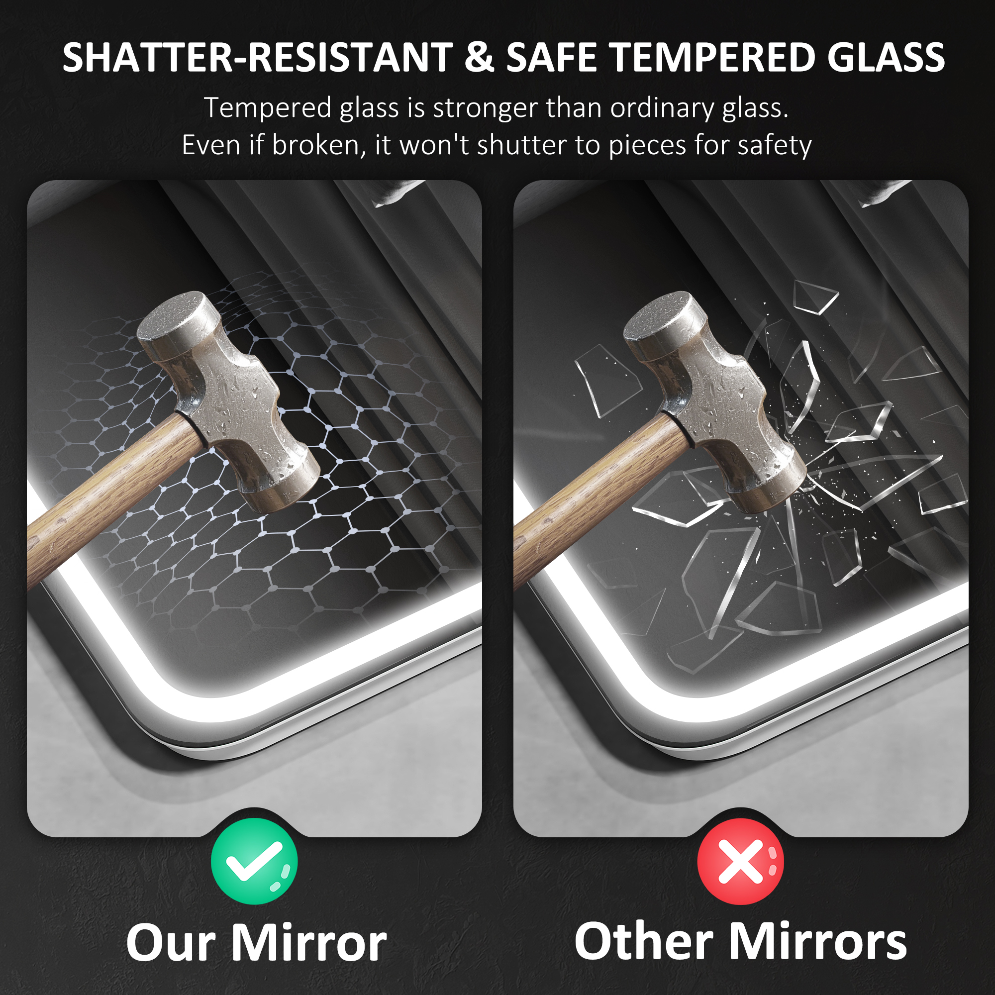 - HD and shatter-resistant tempered glass for a safe and clear reflection